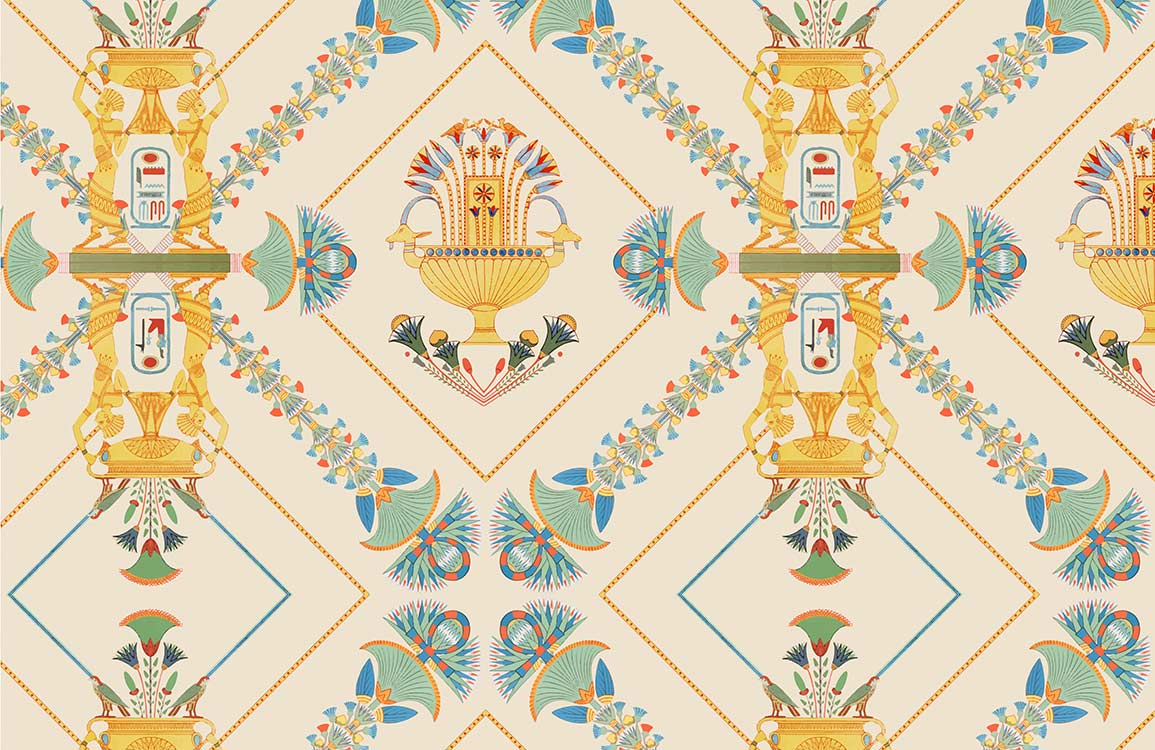 This Egyptian-style design shows us a regular and delicate pattern. The combination of the simple colours,yellow and green,gives us a vivid and bright perception. This wallpaper mural can be installed in your bedroom, home office, dining room and kitchen. And this mural is great for people who likes brightness and elegance.