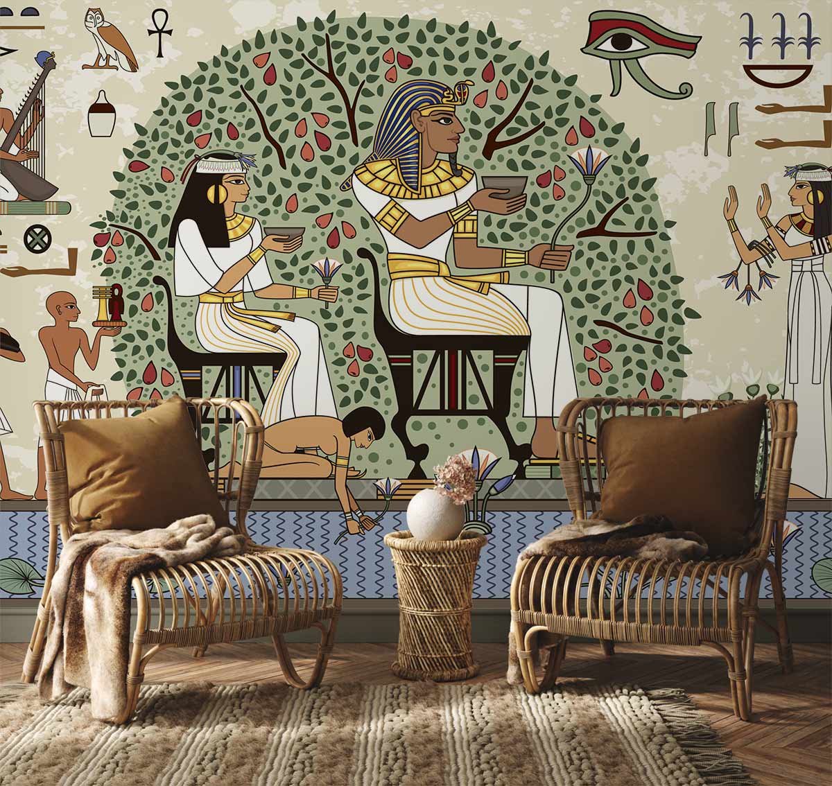 If you like Egyptian-style wallpaper mural, this design can be a good choice for you. The special wallpaper mural shows the Egyptian loyalty. The delicate picture can bring you to a wonderful Egyptian world. You can use this wallpaper mural to decorate you room to be an exotic place. It allows you to experience the Egyptian culture at your home. Perfect to be installed in your living room, hallway and kitchen.