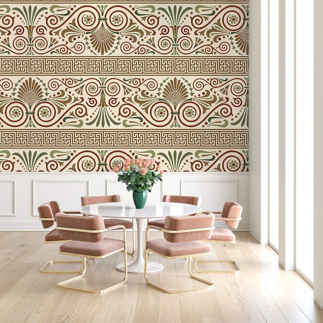Immerse your space in timeless elegance with the Egyptian Underprint Wallpaper Mural. The intricate design features delicate scrollwork and ornate motifs evoking ancient artistry, set against a charming background. This mural couples classic sophistication with a rich palette, making it a perfect fit for any stylish environment.