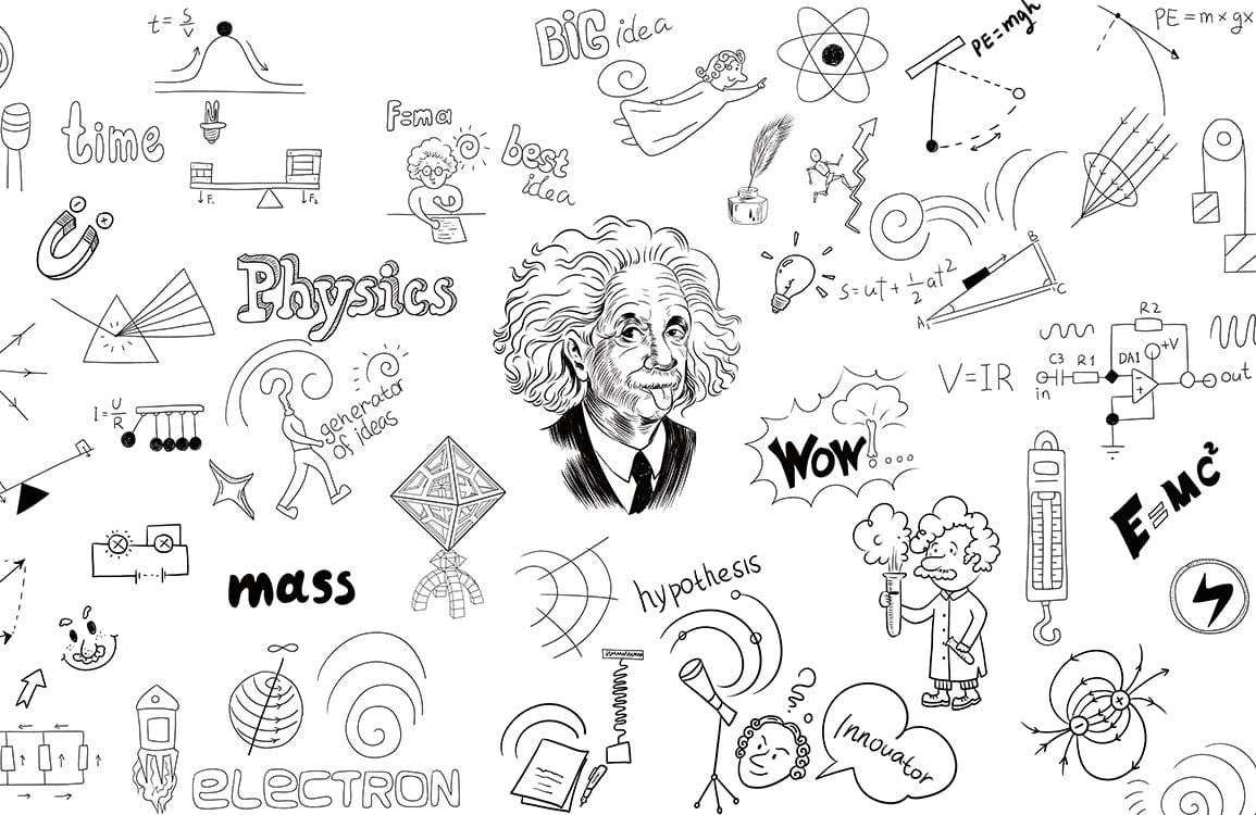 Welcome to the Einstein physics world. In this wallpaper mural, there are many experiments and formulas. The painting style is very cute. You can put this wallpaper mural in your bedroom and home office. And it will be great for the people who loves physics.