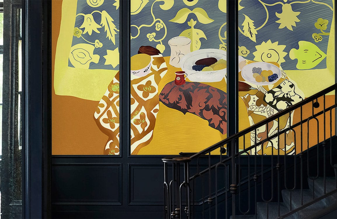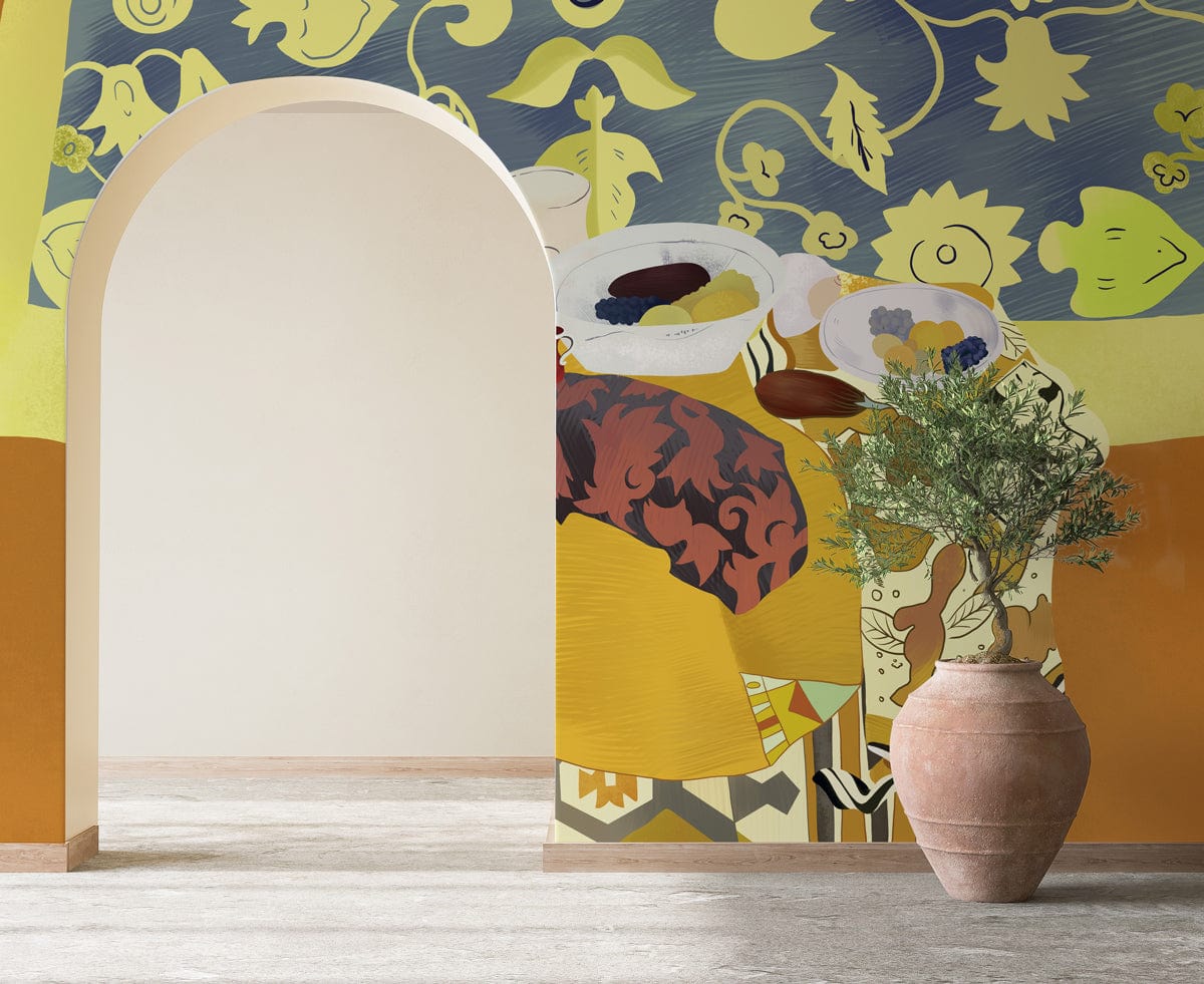 The Elegant Blanket Wallpaper Mural exudes artistic flair with its intricate tapestry of patterns and rich textures, beautifully blending tradition and modernity. Bold strokes of ochre, vibrant blues, and deep reds grace its surface, creating a mesmerising visual spectacle. Perfectly suited for eclectic living spaces, sophisticated dining rooms, or serene bedrooms, this mural invites a timeless elegance into any interior, capturing the eye with its unique charm and artistic depth.