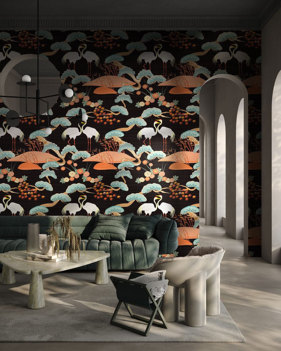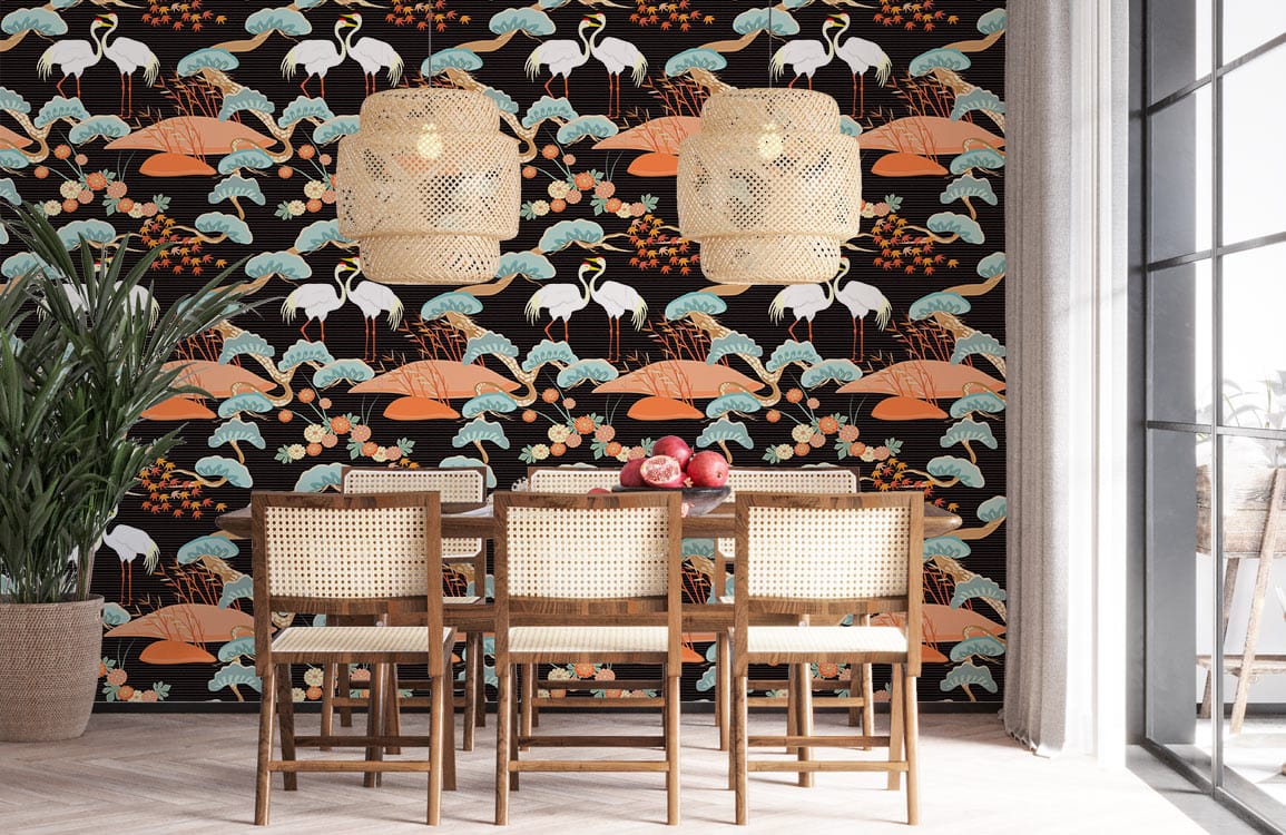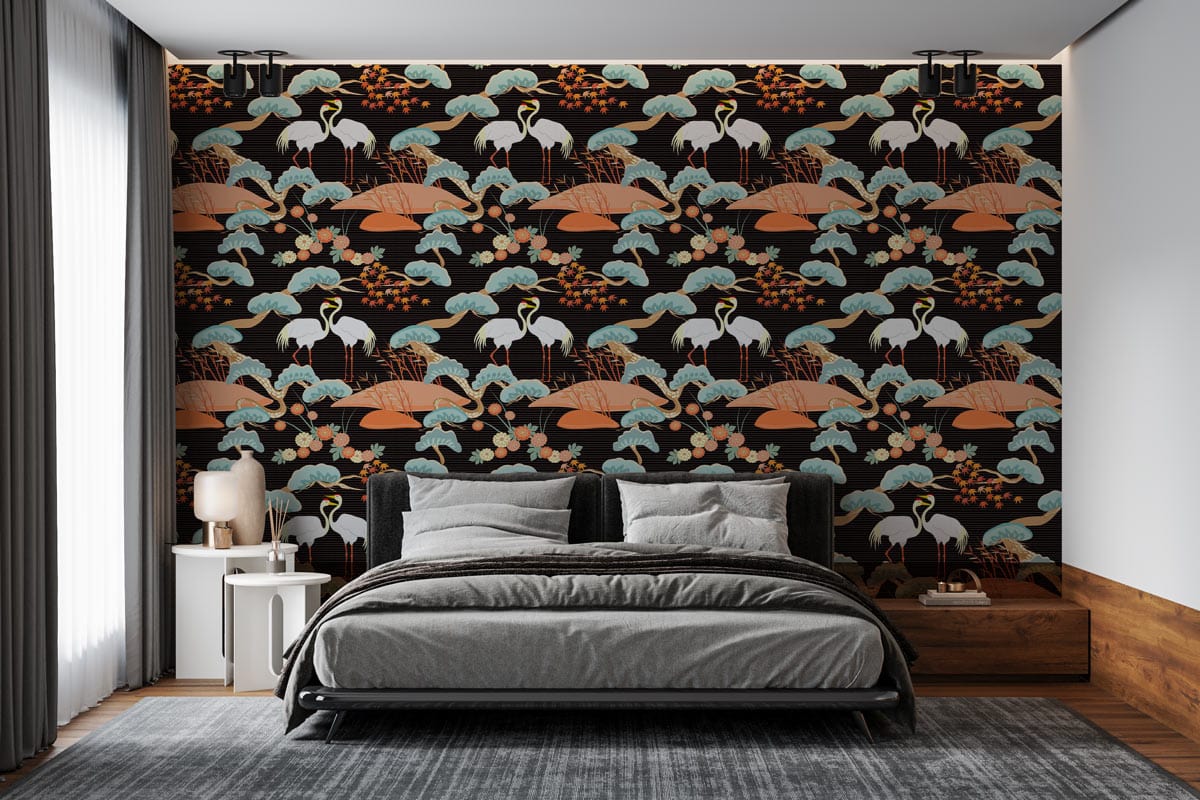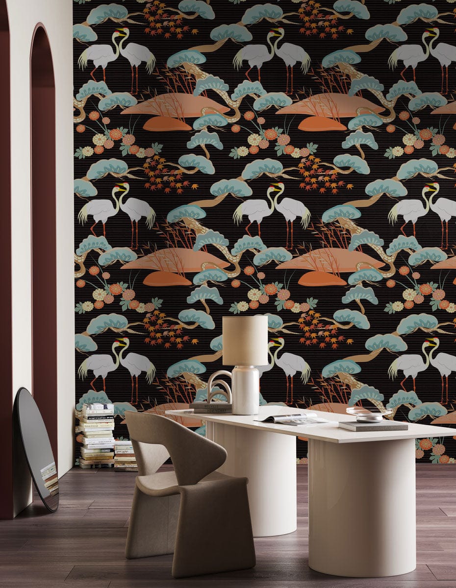 Embrace the harmony of nature with this Elegant Cranes & Lotus Mural Wallpaper. The sophisticated design showcases graceful cranes amidst serene lotus flowers, creating a tranquil tableau that captures the essence of natural beauty. Delicate patterns and rich hues complement contemporary and traditional settings alike, offering an artistic touch that seamlessly fits into a multitude of interiors.