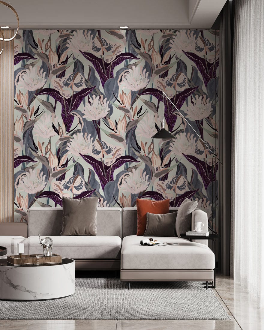 The Elegant Floral Symphony Mural Wallpaper weaves intricate floral motifs with a graceful interplay of soft pastels and rich, deep hues. This artistic creation draws the eye with its delicate rendering of petals and leaves, imbuing any room with a sense of tranquillity and timeless charm. Perfectly complementing both classic and contemporary interiors, its soft texture and sophisticated palette make it an exquisite choice for those looking to infuse their space with elegance and grace.