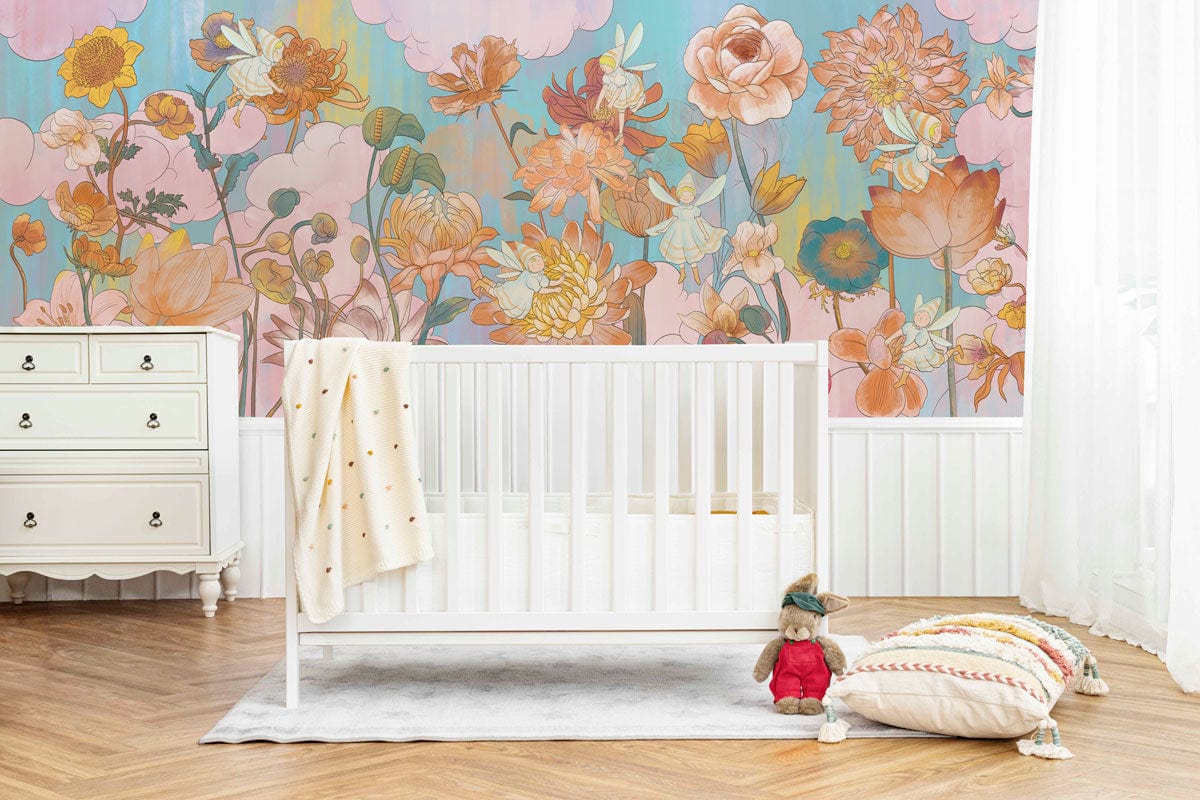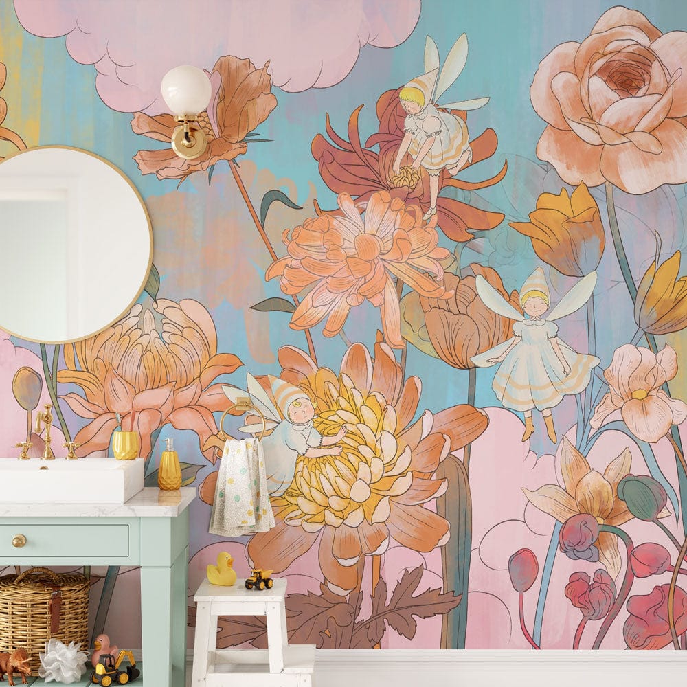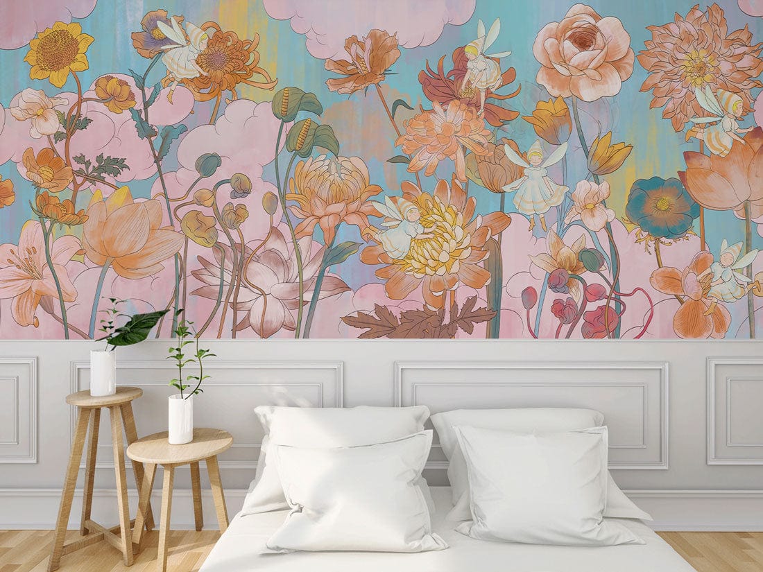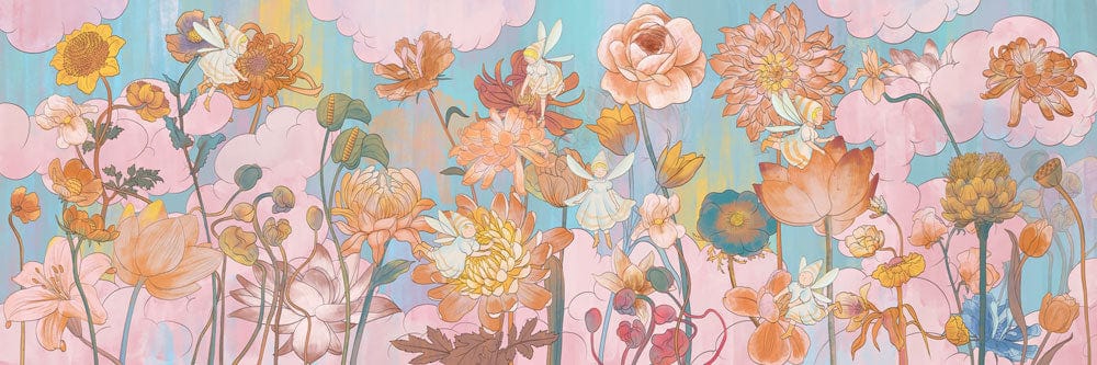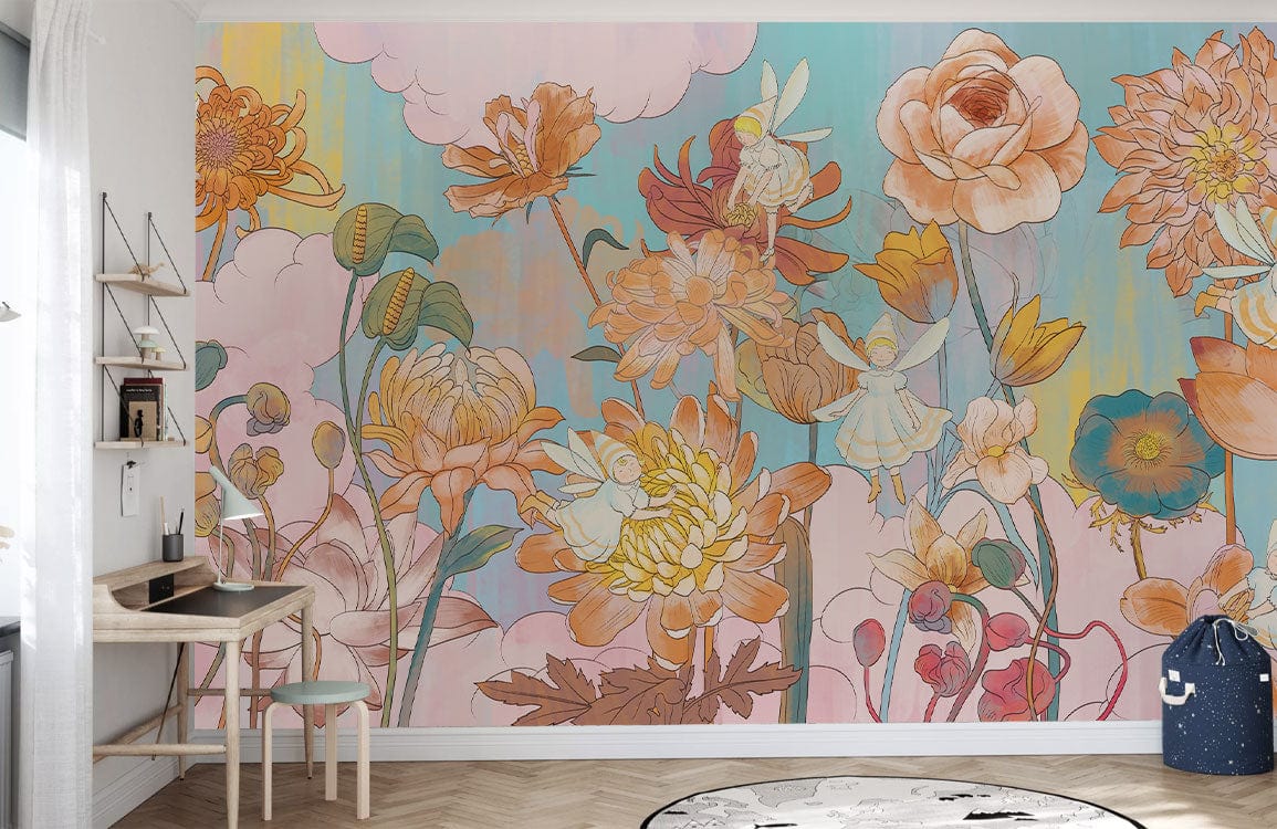 Immerse your space in a whimsical garden with the Elves Among Flowers Wallpaper Mural. This enchanting design features delicate elves interwoven with a tapestry of blooming flowers, creating a serene and dreamlike atmosphere. The intricate details and soft textures evoke a sense of artistry, inviting tranquillity and refined elegance into any room. Perfect for those who appreciate sophistication and a touch of fantasy.