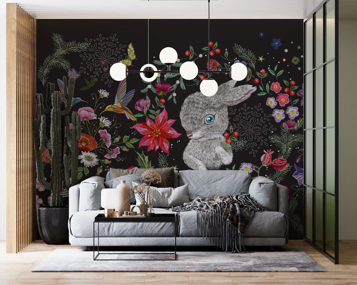 Embroidered Rabbit Wallpaper Mural
