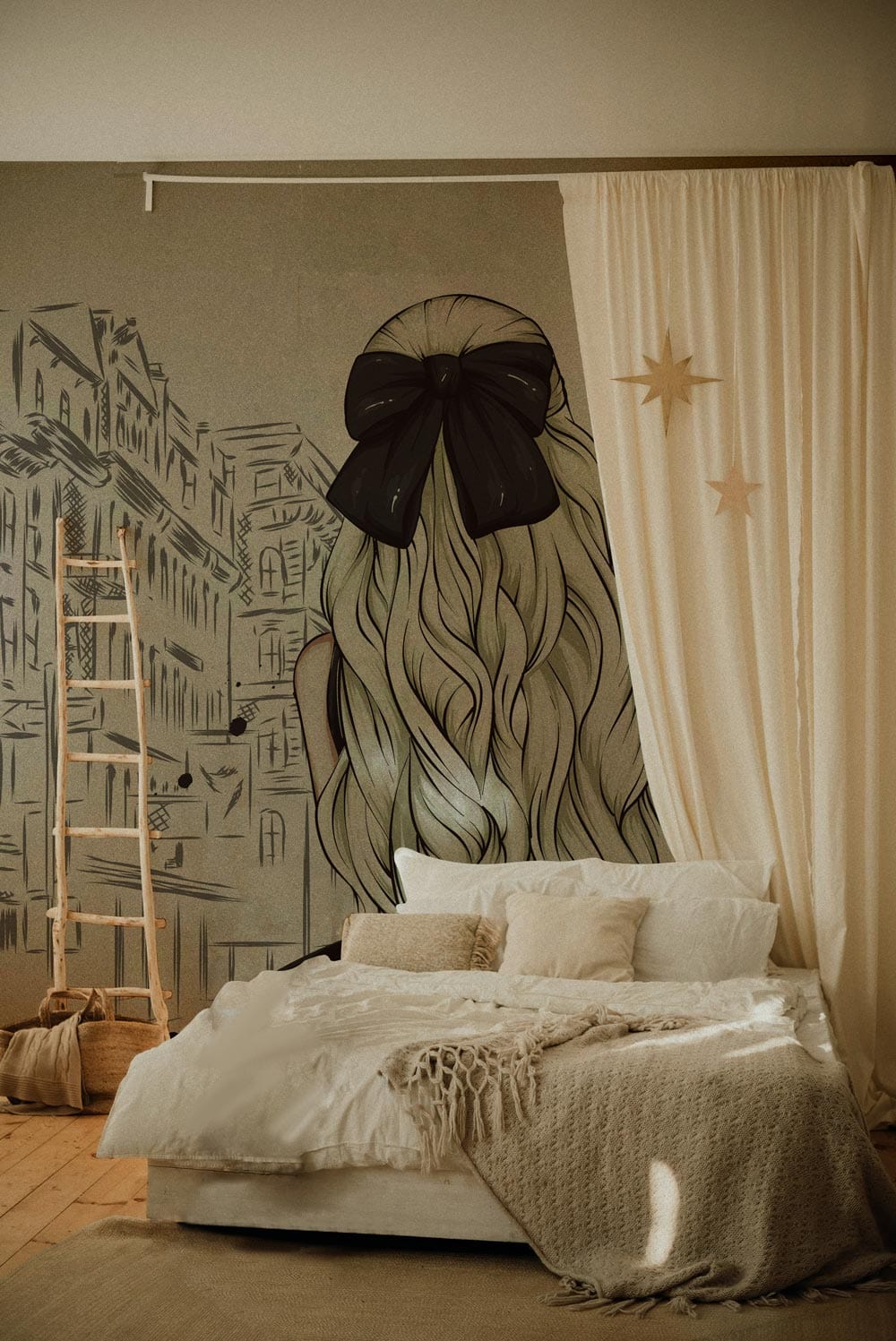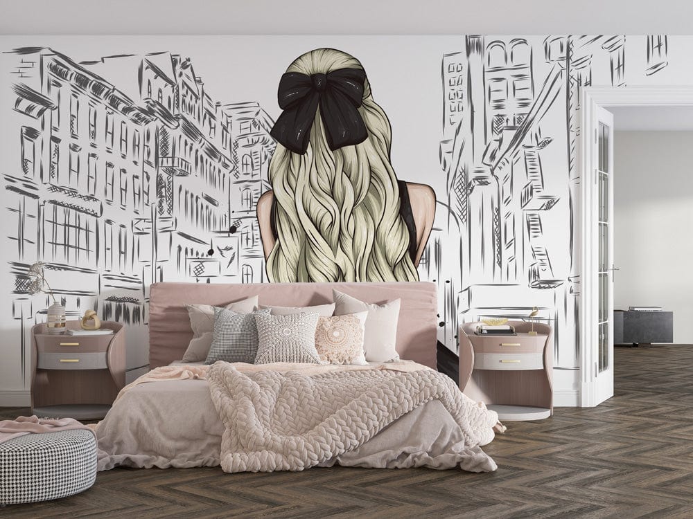 Bring the romance of Paris to your living room with this breathtaking Emily in Paris Wallpaper Mural. An adorable illustration of a young girl looking at the romantic cityscapes, this wallpaper is whimsical and playful and can used to create a statement in any room around your home. Characterized by soft textures and a playful interplay of light and shadow, the design is suitable to both classic and modern decors. The bright colours and fun characters will also bring happiness to your walls. Capture the unique feel of the iconic city on this wall art!