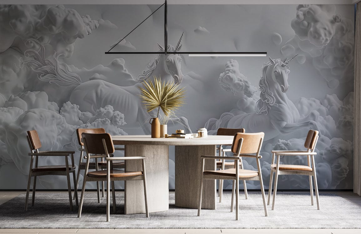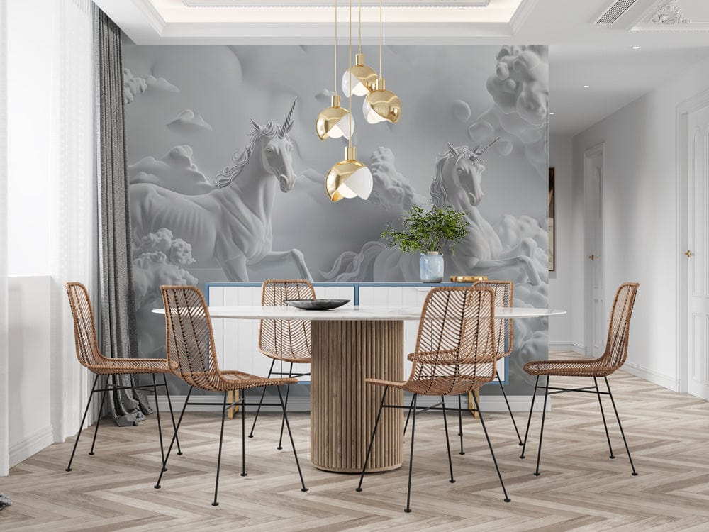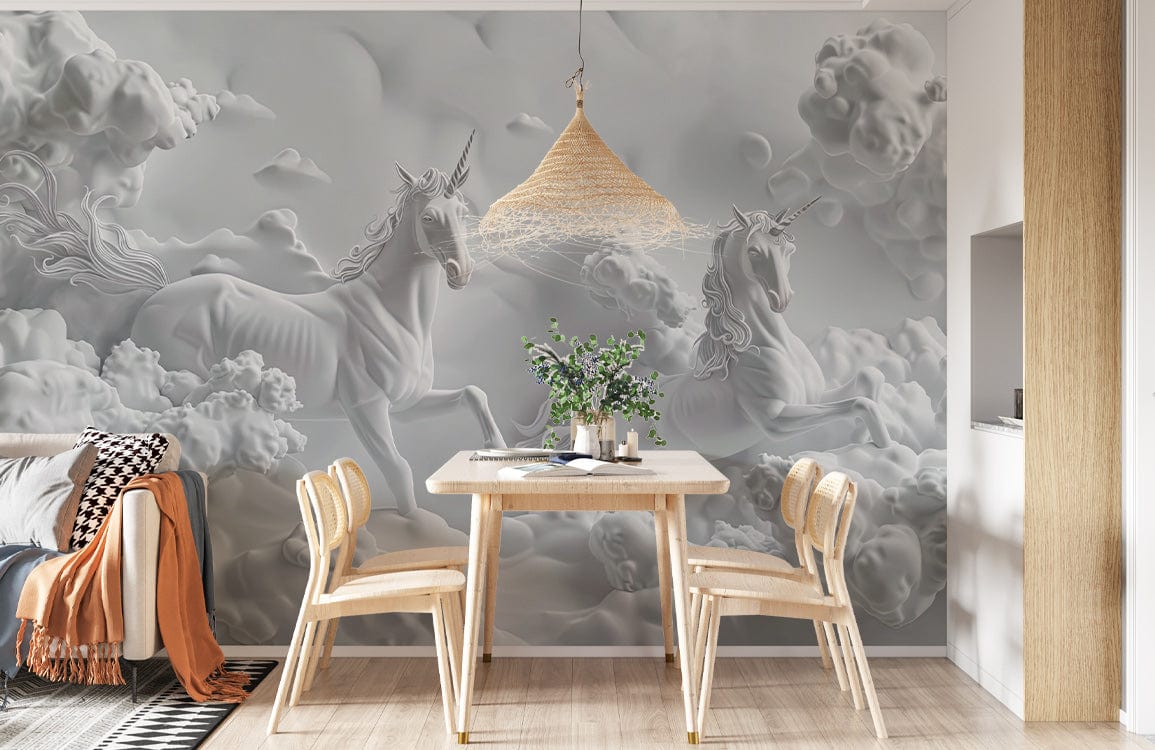 Embark on an ethereal journey with the Enchanted Unicorn Journey Mural Wallpaper. This exquisite design captures the majestic allure of unicorns amidst a dream-like cloudscape. Intricate detailing and subtle textures create an illusion of depth, bringing a captivating visual narrative to life. Perfectly suited to elevate both classic and contemporary interiors, this mural offers a timeless charm that invites a sense of wonder into any space.