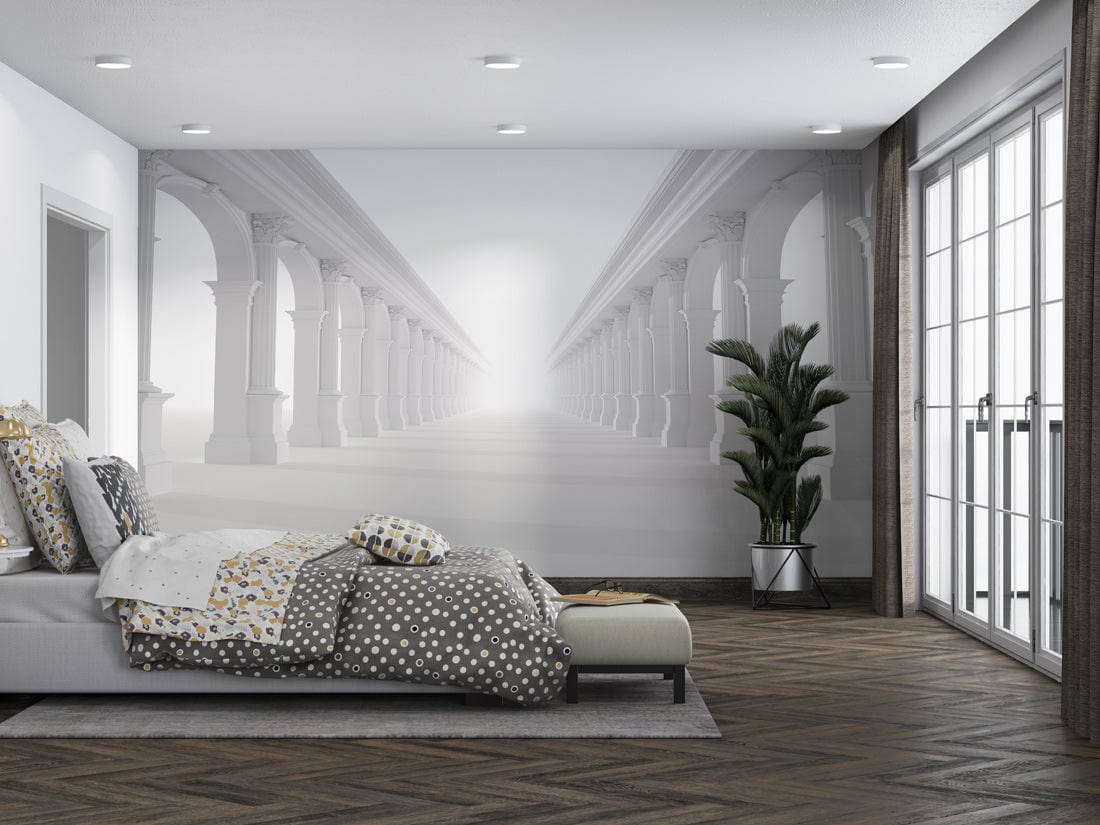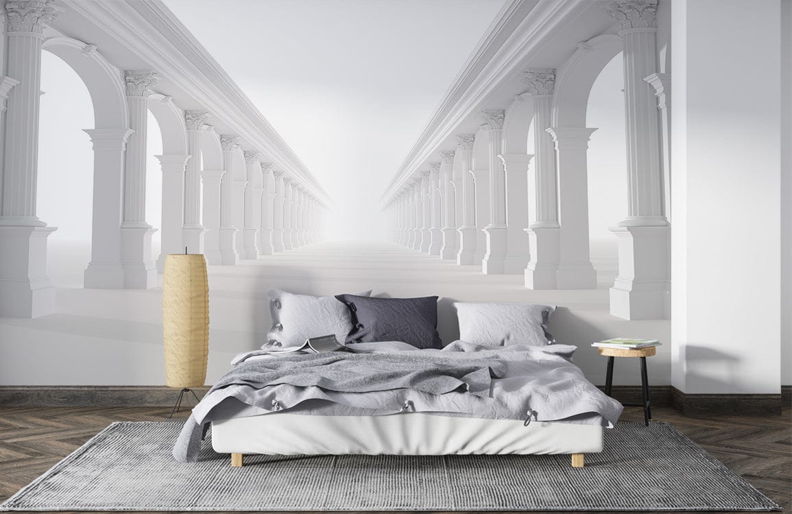 Endless Arched Elegance Mural Wallpaper features a captivating corridor of arches, invoking a sense of depth and infinity. Its detailed columns cast subtle shadows, creating a harmonious play of light and shadow. Ideal for bringing a touch of classic grandeur into contemporary spaces, this mural evokes timeless beauty that blends seamlessly with any décor.