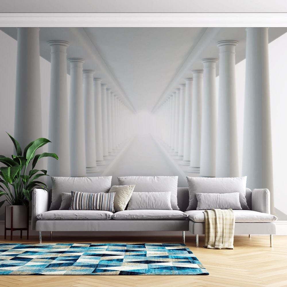 Step into the serene grandeur of classical architecture with the Endless Pillar Pathway Mural Wallpaper. Featuring a sophisticated depiction of infinite columns extending towards an ethereal horizon, this design evokes a sense of depth and tranquillity. The interplay of soft whites and subtle greys creates an atmosphere of elegance, making it an exquisite addition to both traditional and contemporary interiors.