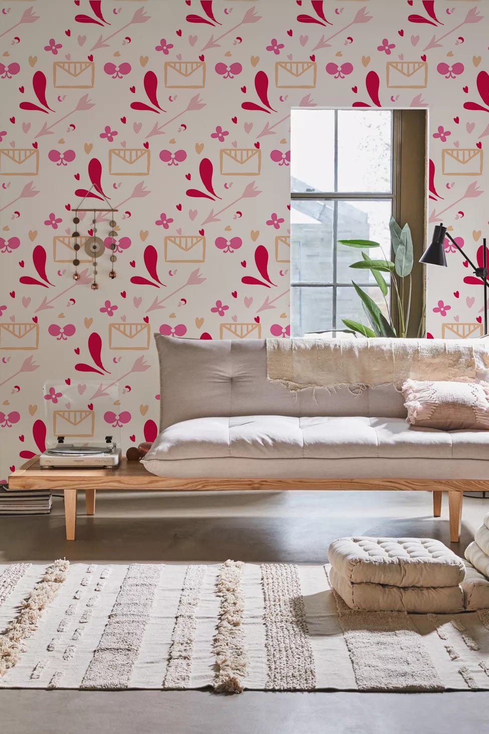 Here is the perfect wall mural for anyone who loves pink and envelope pattern. Our Envelope Love Wallpaper Mural features bright colours, sweet patterns, and a cheerful heart to make your room alive. Creating a lovely effect that will brighten up your home, this mural will add a touch of romance to your space and fill your area with a vintage ambiance. Place this beautiful pink and white pattern above your bed, on the accent wall in your living room or dining room, or give your bedroom a burst of colour!