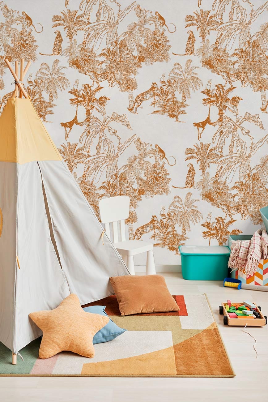 Step into an exotic world with the Jungle Safari Adventure Mural Wallpaper. Its intricate design showcases lush foliage and graceful creatures, rendered in warm, earthy tones that infuse spaces with timeless elegance. Ideal for adding a sophisticated touch to any room, this piece effortlessly bridges the gap between nature's beauty and refined interior aesthetics.