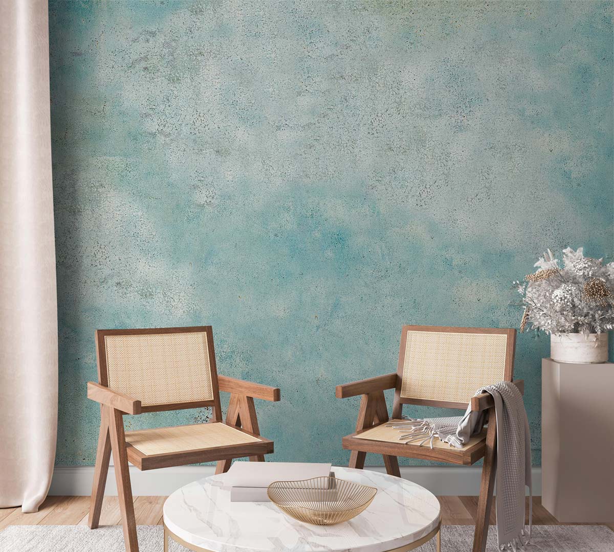 Immerse your space in a serene ambiance with the Fading Blue Wallpaper Mural. Its artful blend of azure and soft grey evokes the tranquility of a misty horizon, lending a sophisticated yet subtle charm to any setting. The mural's textured finish adds depth, creating a timeless backdrop that complements both contemporary and classic interiors.