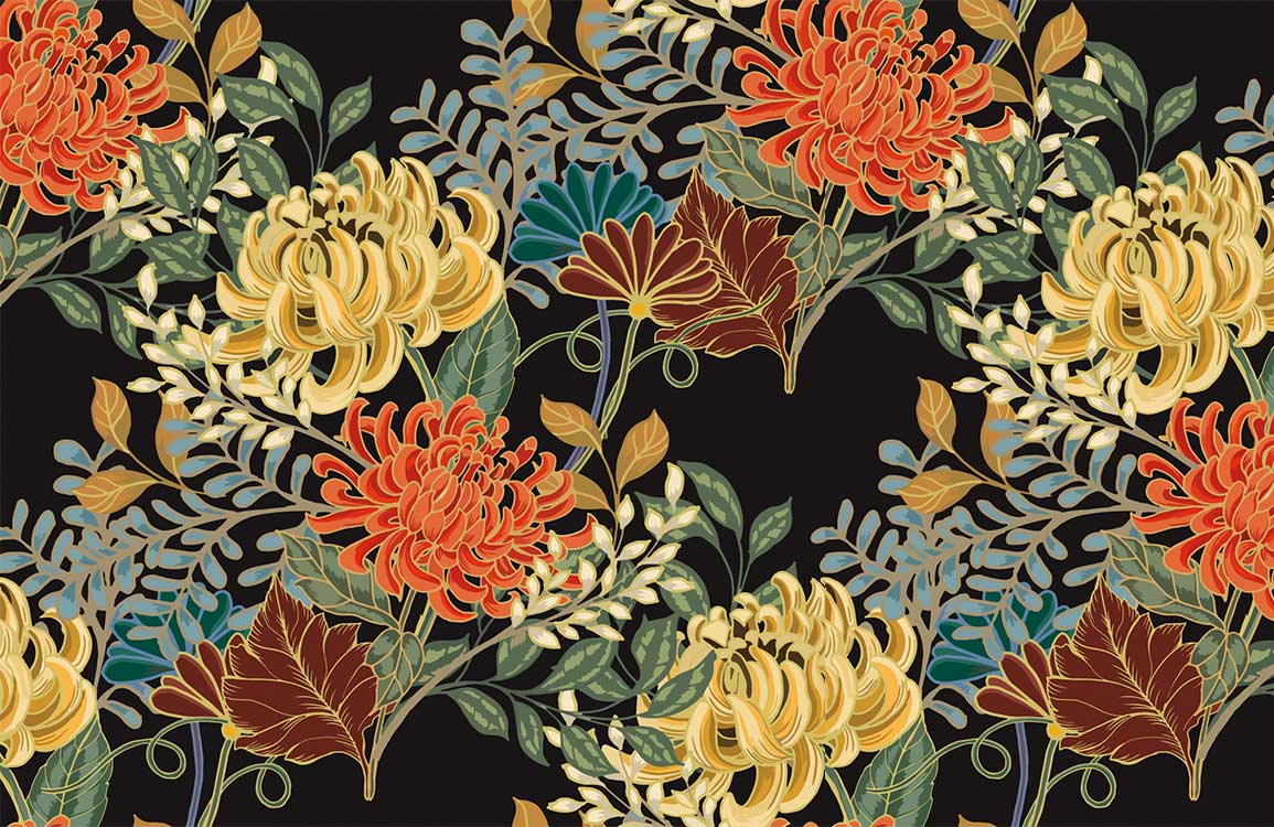 This sophisticated Fantastic Florals Wallpaper Mural adorns your walls with an exquisite display of intricate floral designs, featuring lush patterns set against a rich backdrop. Delight in the luxurious blend of chrysanthemum motifs, each petal artistically detailed to evoke a timeless beauty. Perfect for adding an artistic touch to modern or vintage interiors, this mural creates a captivating focal point, bringing a serene garden ambiance indoors.