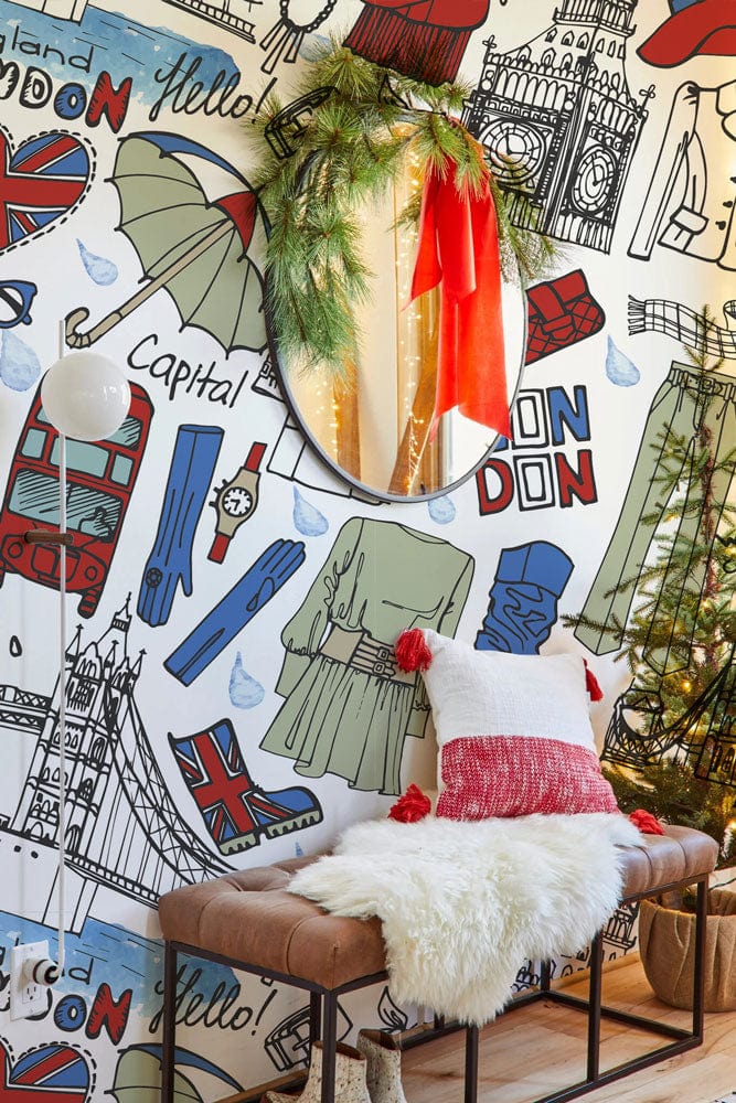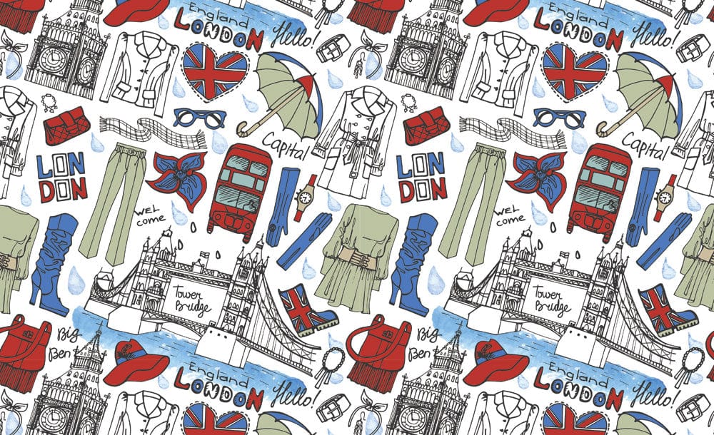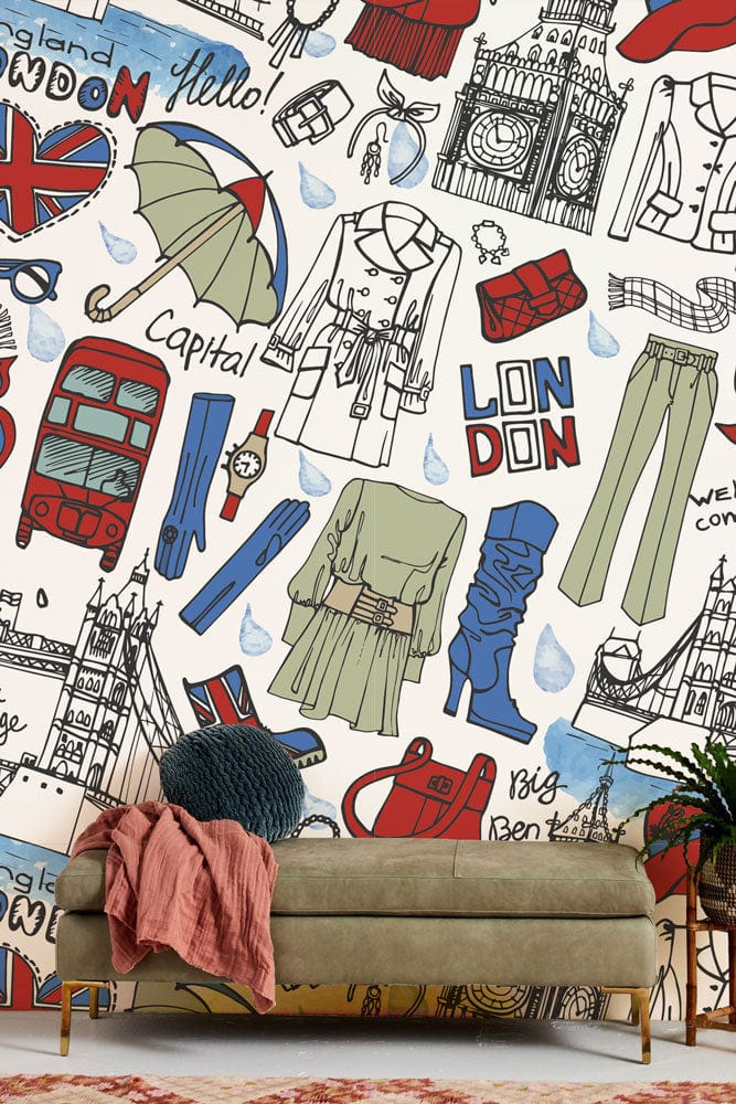 This Fashion London Wallpaper Mural beautifully captures the vibrant essence of London life with its artistic depictions of iconic landmarks and elements of British fashion. The intricate sketches and playful motifs in subtle hues invite a touch of cosmopolitan charm into any space. Its detailed artwork and stylish layout blend harmoniously, offering a versatile decor option for homes seeking an air of timeless elegance.