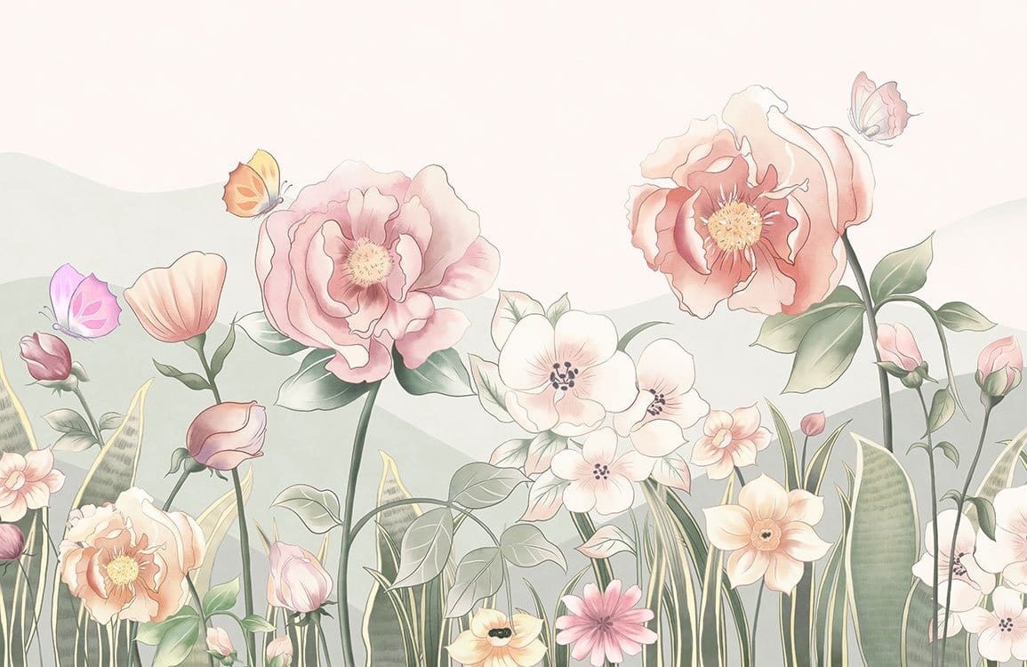 Install this beautiful flower wallpaper in your bedroom, living room and dining hall that it acts as an extension of your space. Adorn the walls in a pastel yet natural tone with vivid flowers surrounding you. This gorgeous wall mural will garuantee to add instant freshness to your rooms and impress you and your guests.