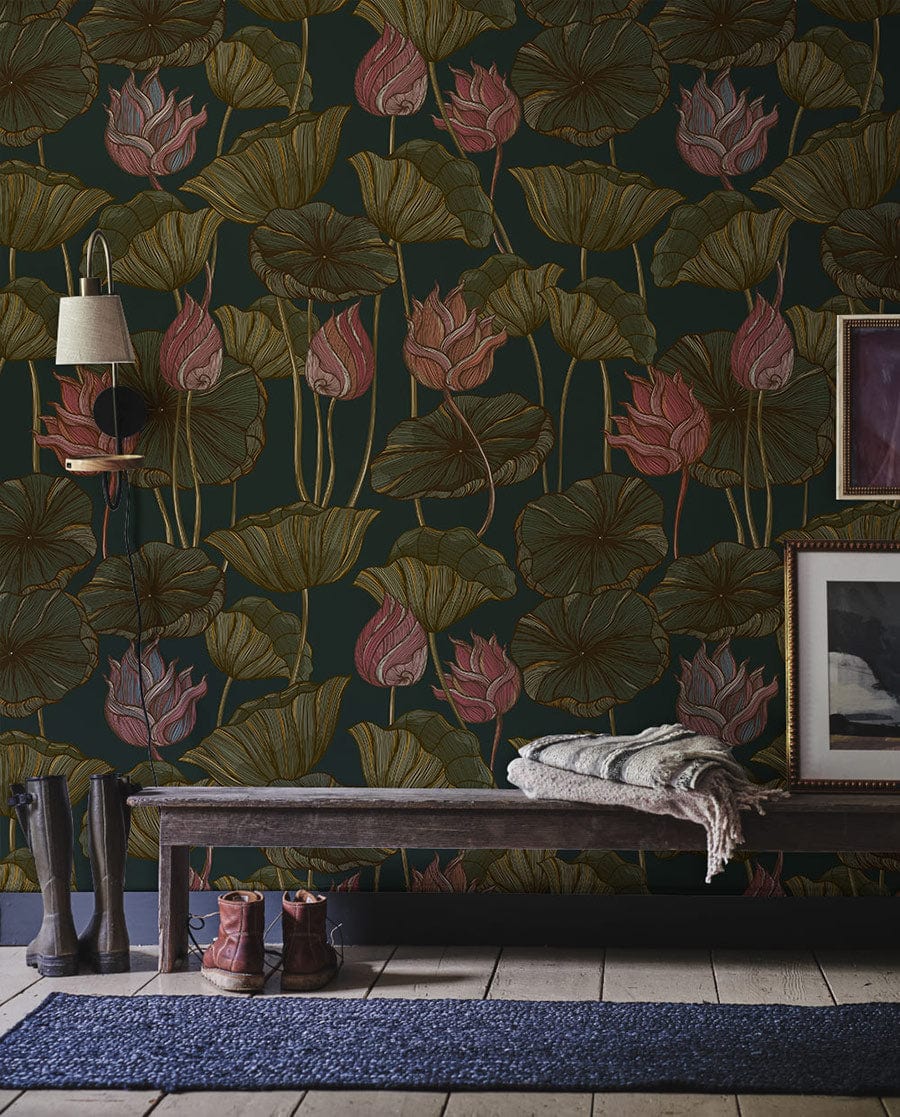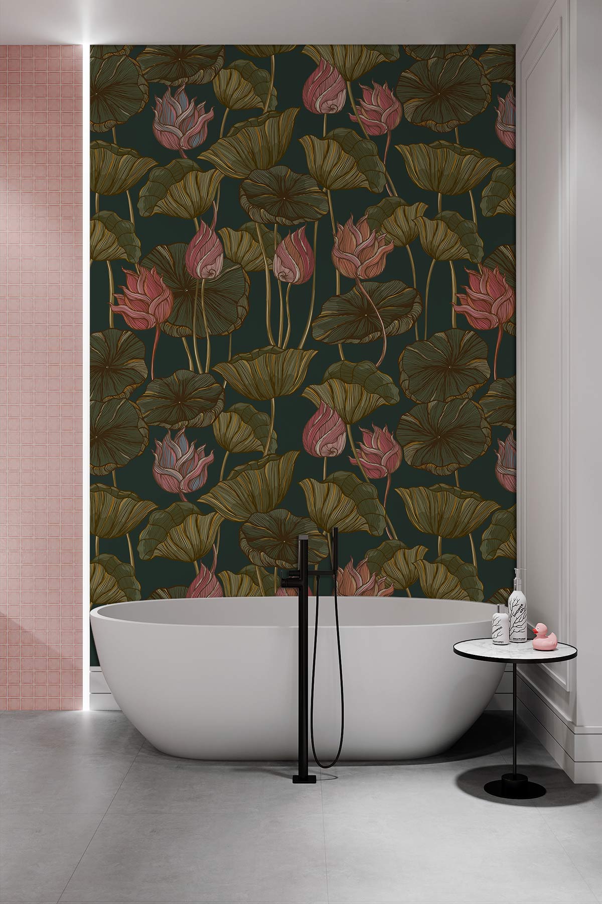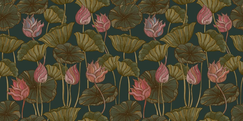 The Fire Lotus Wallpaper Mural exudes a sophisticated charm with its intricate lotus design beautifully arranged against a deep, rich backdrop. The delicate pink and earthy green hues create a serene ambience, evoking a sense of tranquillity and elegance. Perfect for a variety of interior spaces, this mural effortlessly bridges classic and contemporary styles, offering a timeless artistic statement.