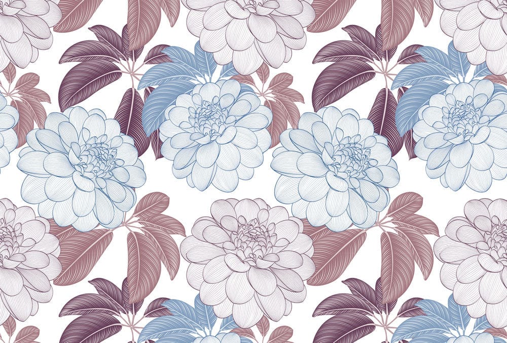 Indulge in the exquisite charm of the Flourishing Wallpaper Mural, where richly detailed floral motifs grace your walls with elegance. The harmonious arrangement of blooming flowers, adorned in shades of soft blue and gentle mauve, evokes a sophisticated ambience that seamlessly integrates into any decor. Perfectly tailored for spaces that call for a touch of refined nature, this mural effortlessly enhances the aesthetic appeal of your interiors.