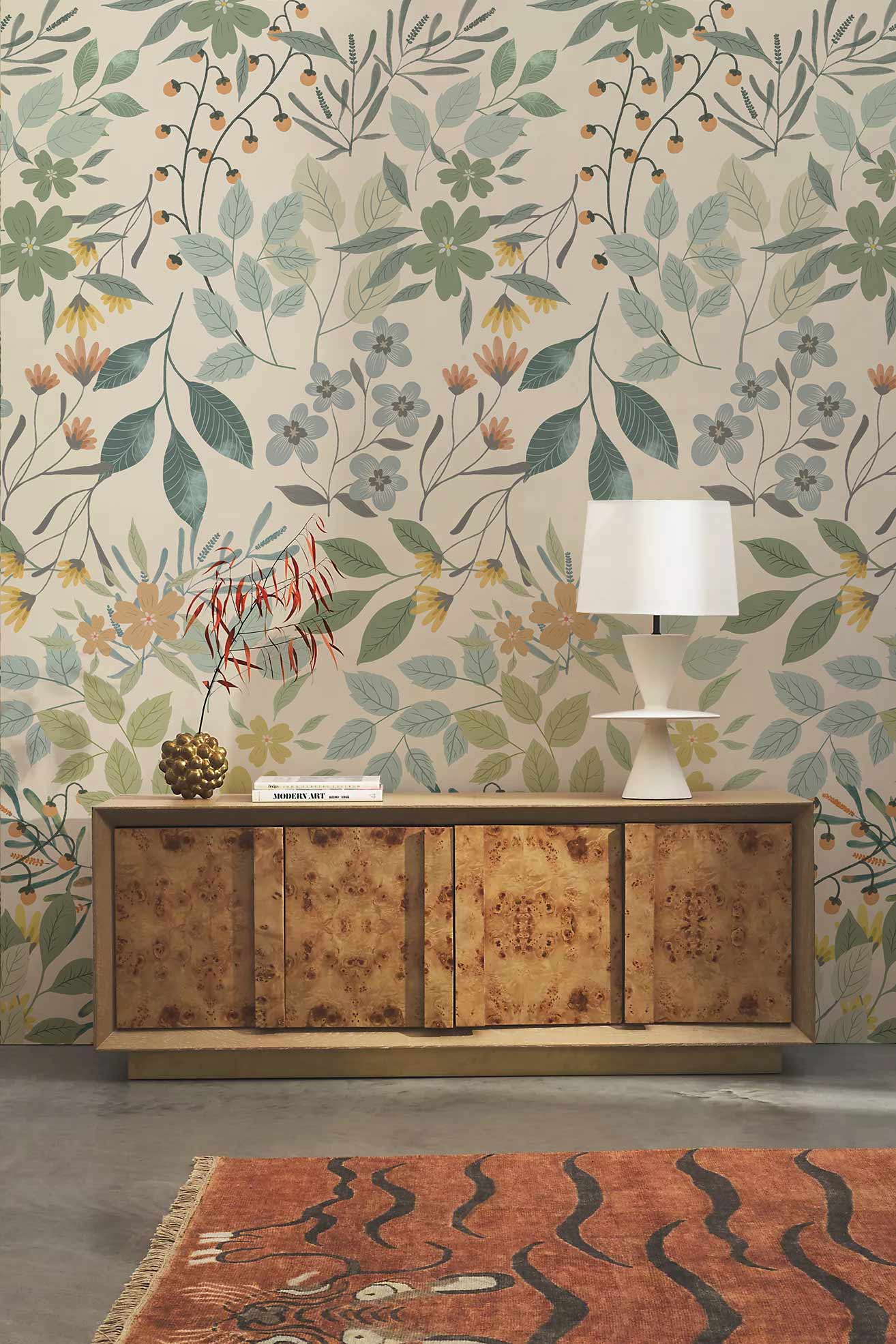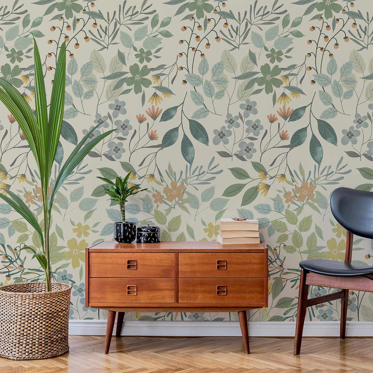 Immerse your space in the delicate artistry of our Flower Bushes Wallpaper Mural. This mural captures the poetic elegance of nature with intricate floral patterns, combining sophisticated detailing with serene hues. Envision the gentle movement of wildflower branches, perfectly harmonised in muted greens, soft yellows, and whispering blues. Ideal for creating a tranquil ambiance, this mural offers timeless charm that finds harmony in both contemporary and classic interiors.