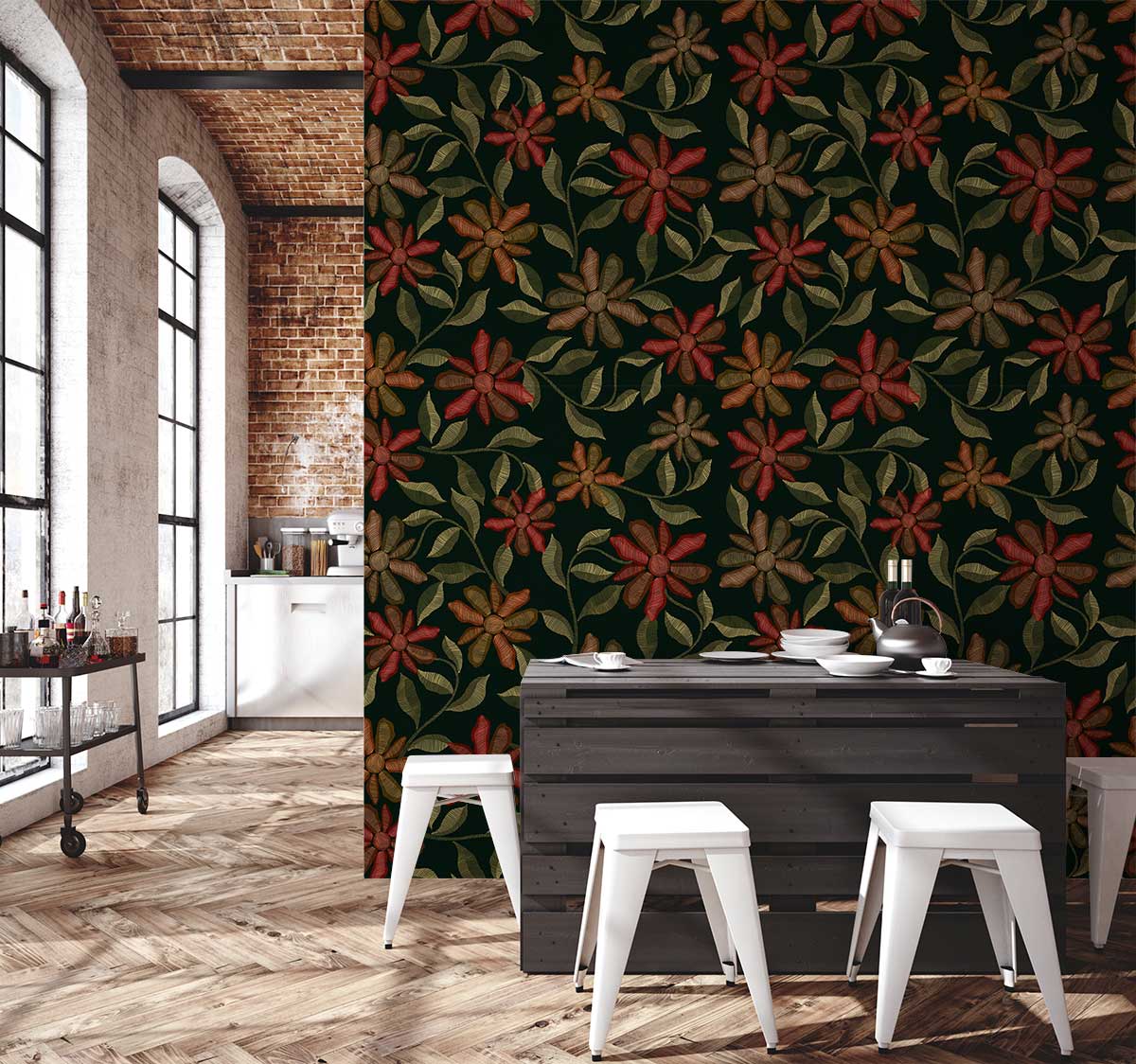 During this time, embroidery has become a great way to involve the whole family in the decorating process. It makes the room feel more personal and gives it a warm, inviting look that most people find irresistible. Our Flower Embroidery Wallpaper Mural is a perfect example of how to make your kitchen or dining room feel like home with a few touches of the embroidery design on your walls. Offering a retro feel, this floral wallpaper will make your living room look like something inspired from lively gardens.