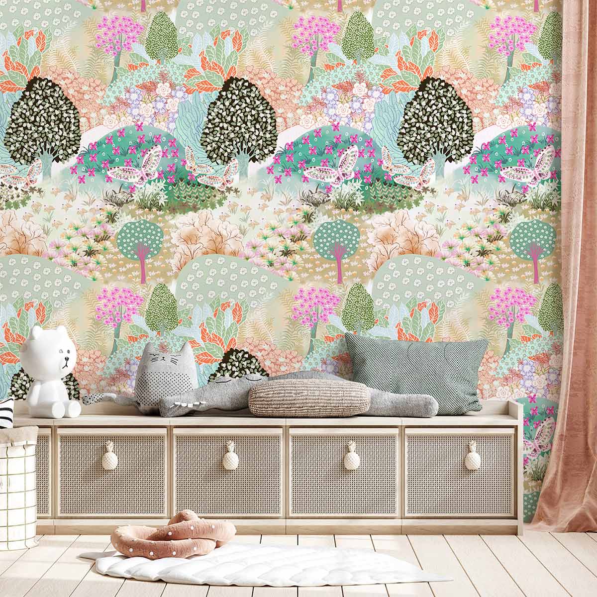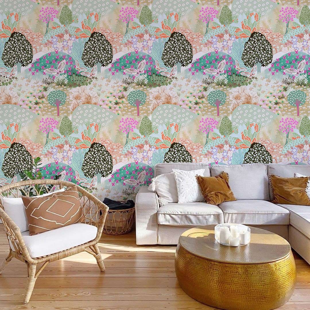 Dive into a serene landscape with the Flower Filled Hills ll Wallpaper Mural, featuring an artful fusion of rolling hills adorned with blossoming flora. The intricate patterns capture the essence of a tranquil countryside, with dotted trees and layered textures that add depth and charm. This mural seamlessly integrates into a myriad of environments, from cosy reading nooks to sophisticated dining areas, offering a timeless allure that enhances its surroundings.