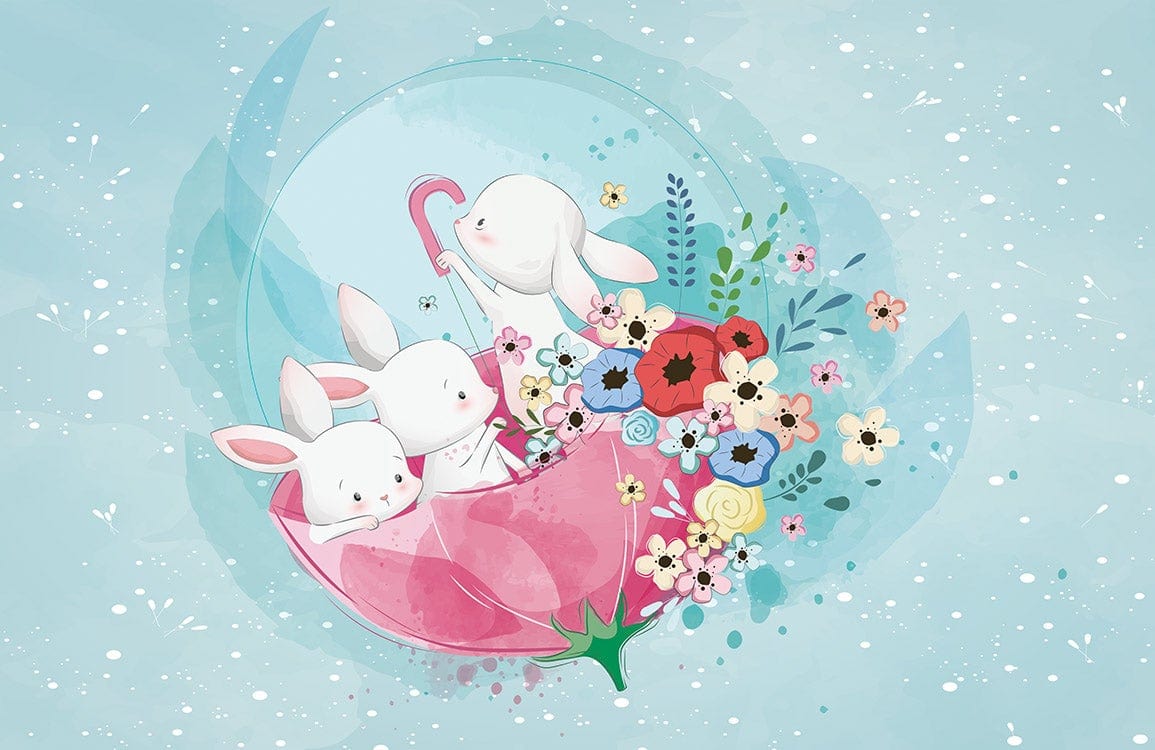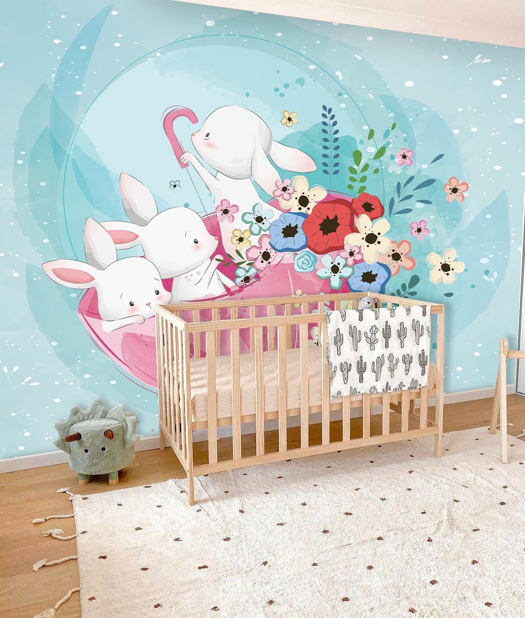 Are you waiting for a new family member to join your warm home? if you are due soon it is the right place to look for cute mural wallpapers to welcome your baby properly. We are here with our new collections for new born babies and kids that will make the room like a piece of heaven. This cute design of bunnies with the baby blue background and the flower like an umbrella carrying them all with love and happiness. This design will make the room so simple and sight comfort because of it light bright colours that is full of positivity.