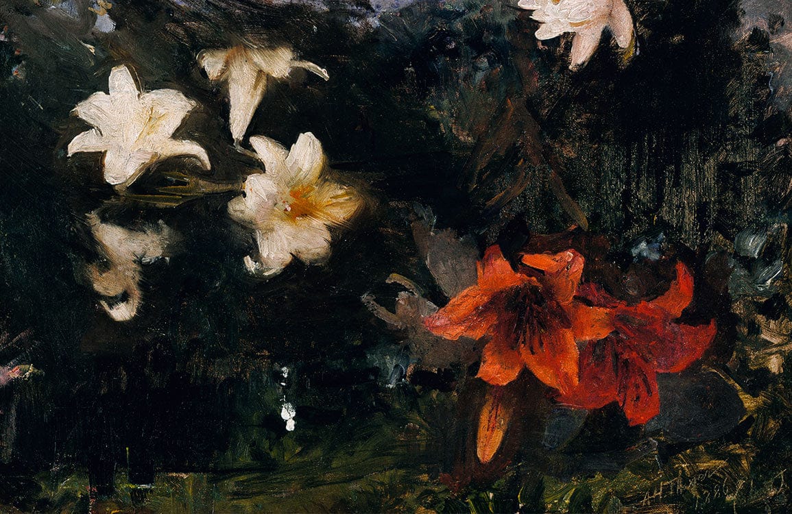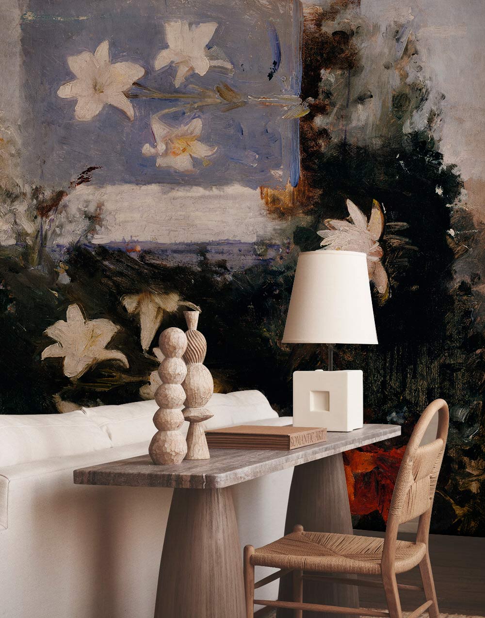 Immerse your space in the timeless allure of the Flower Studies Wallpaper Mural, where delicate lilies bloom against a backdrop of rich, earthy textures. The masterful interplay of light and shadow captures nature's fleeting beauty with sophistication, making a seamless addition to both classic and contemporary settings.