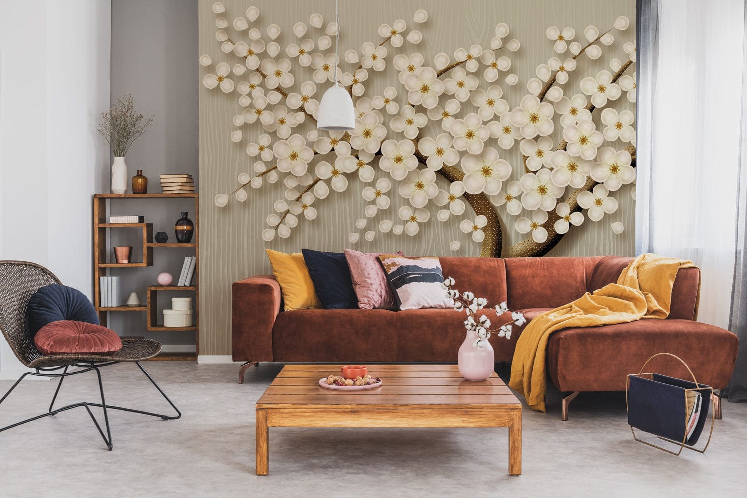 This Flower Tree Wallpaper Mural exudes natural elegance, featuring delicately intertwined branches adorned with soft blossoms. The intricate design and gentle hues create a soothing ambience, seamlessly fitting into both contemporary and traditional interiors.