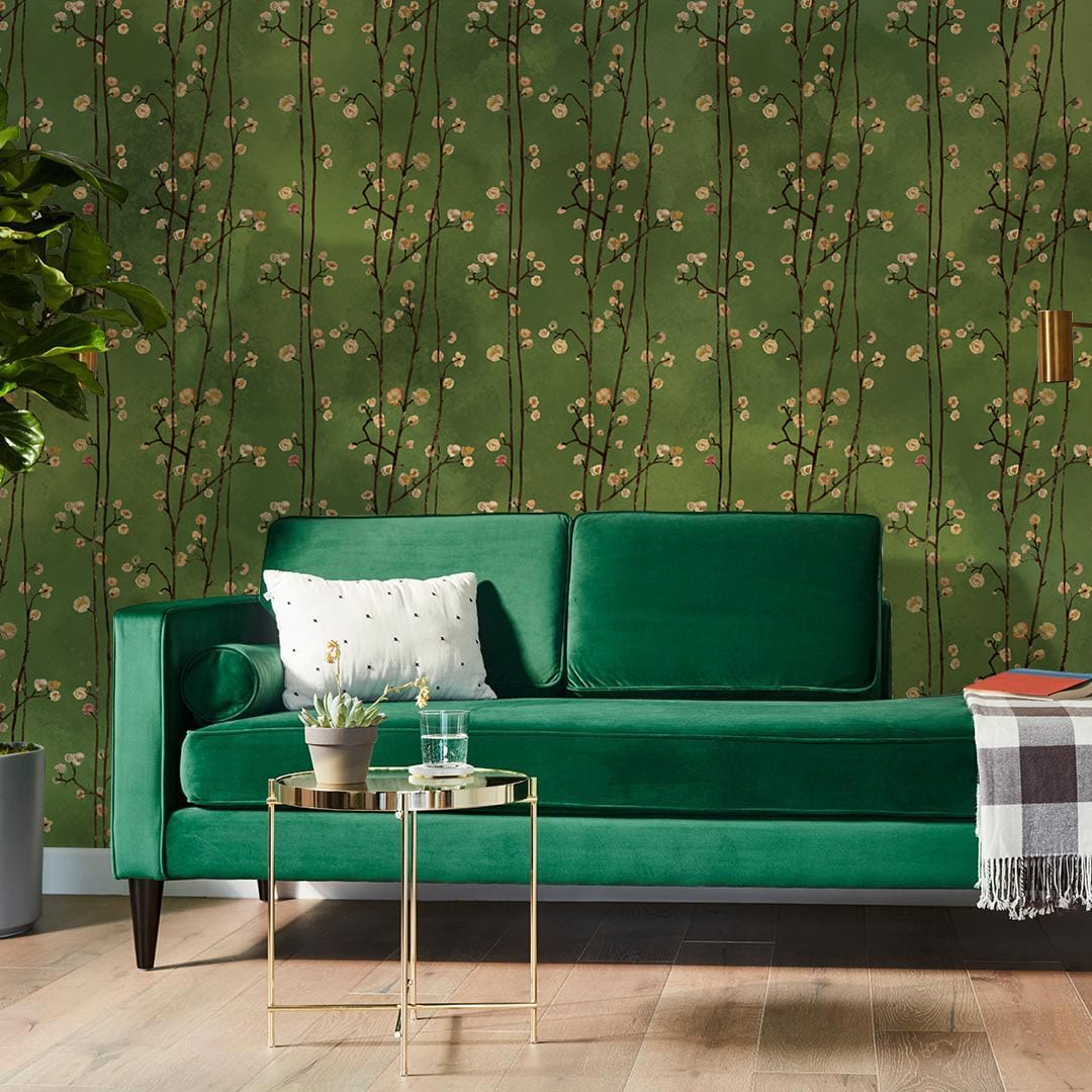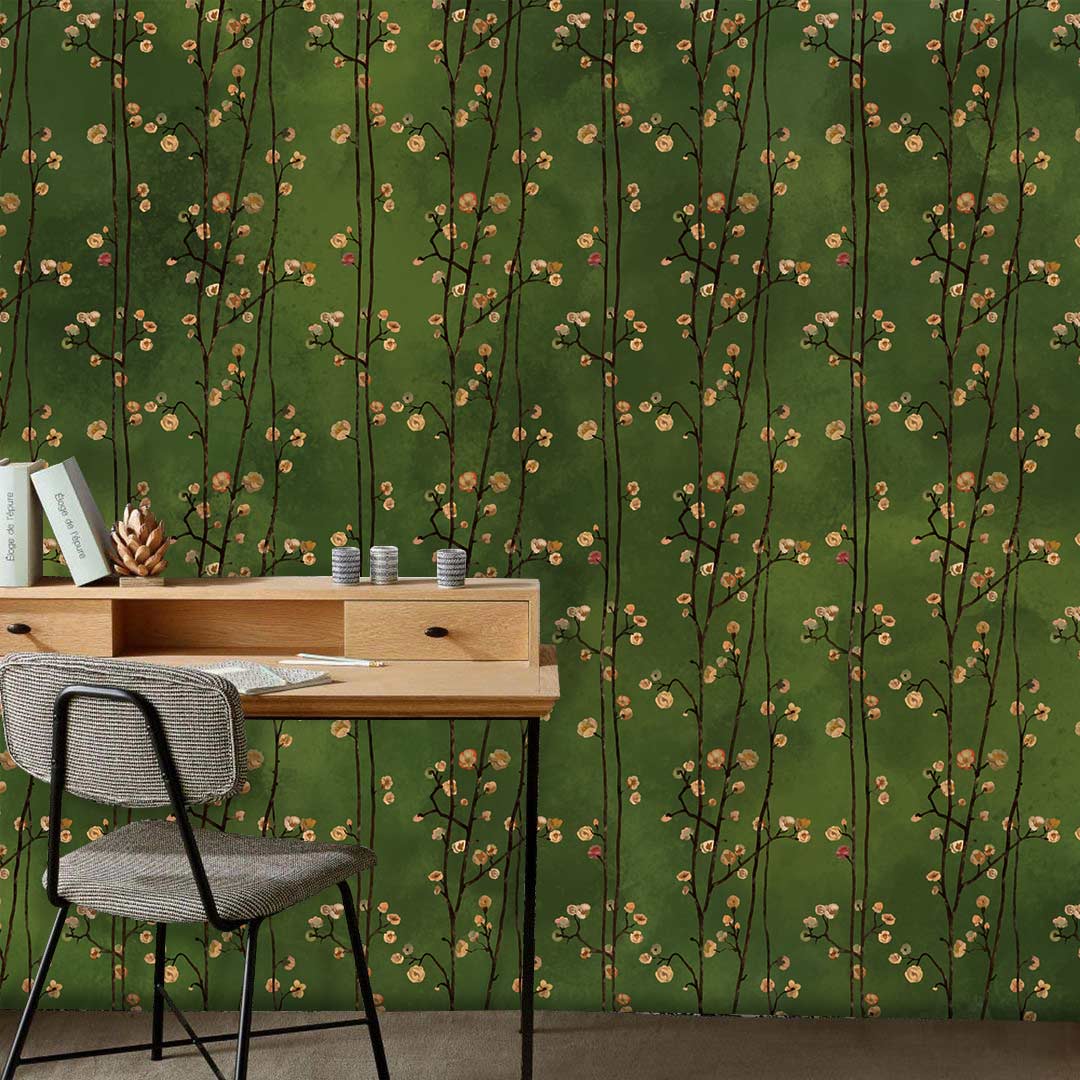 Adorn your walls with the enchanting Flowering Vines Wallpaper Mural, weaving a delicate tapestry of nature-inspired elegance. The intricate design showcases slender vines adorned with gentle floral blossoms in a rhythmic pattern against a lush green backdrop. This mural seamlessly integrates into a myriad of spaces, suffusing them with a timeless grace that bridges vintage charm with contemporary sophistication.