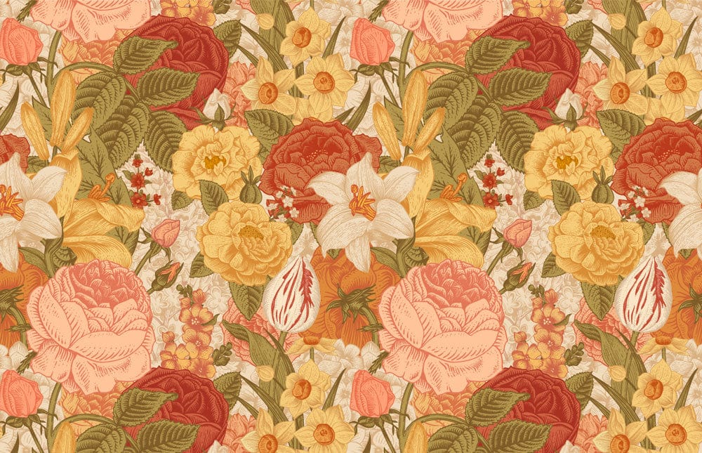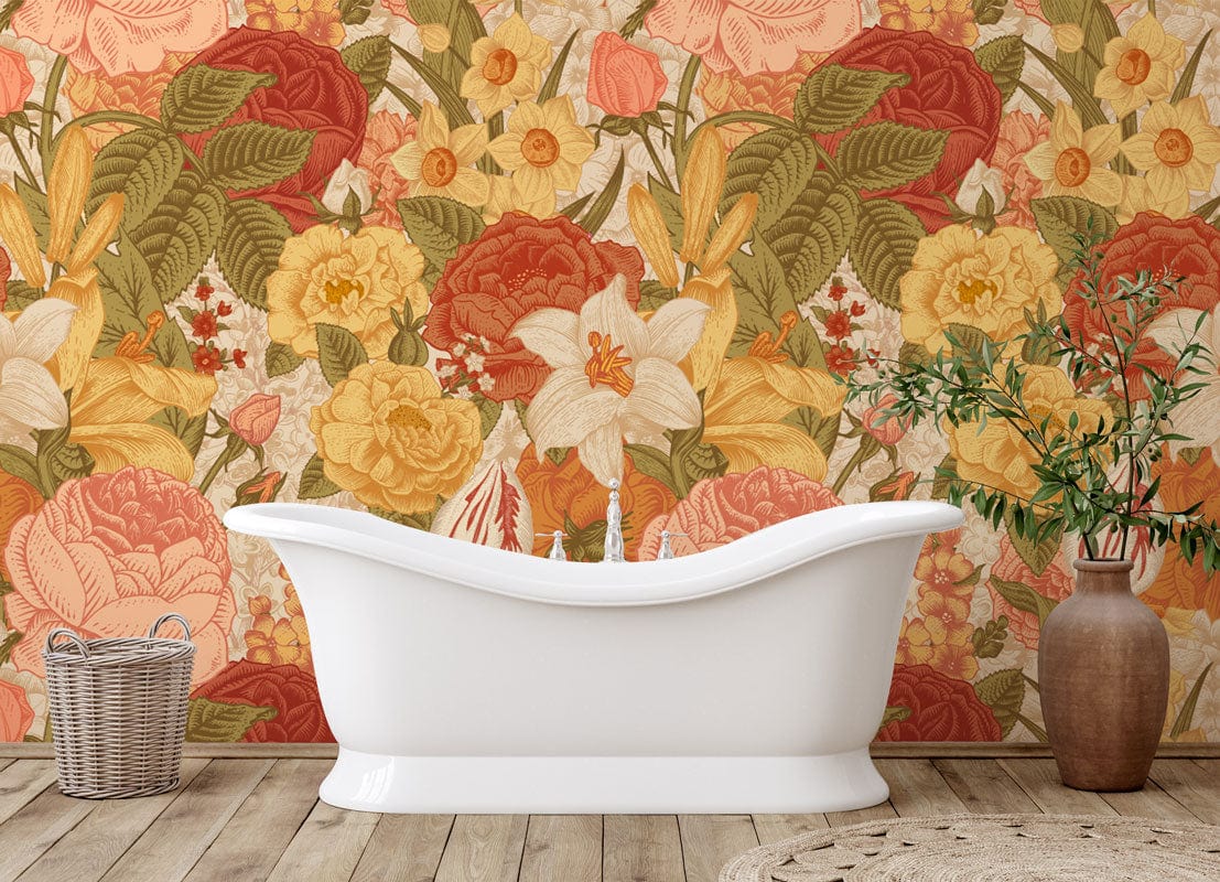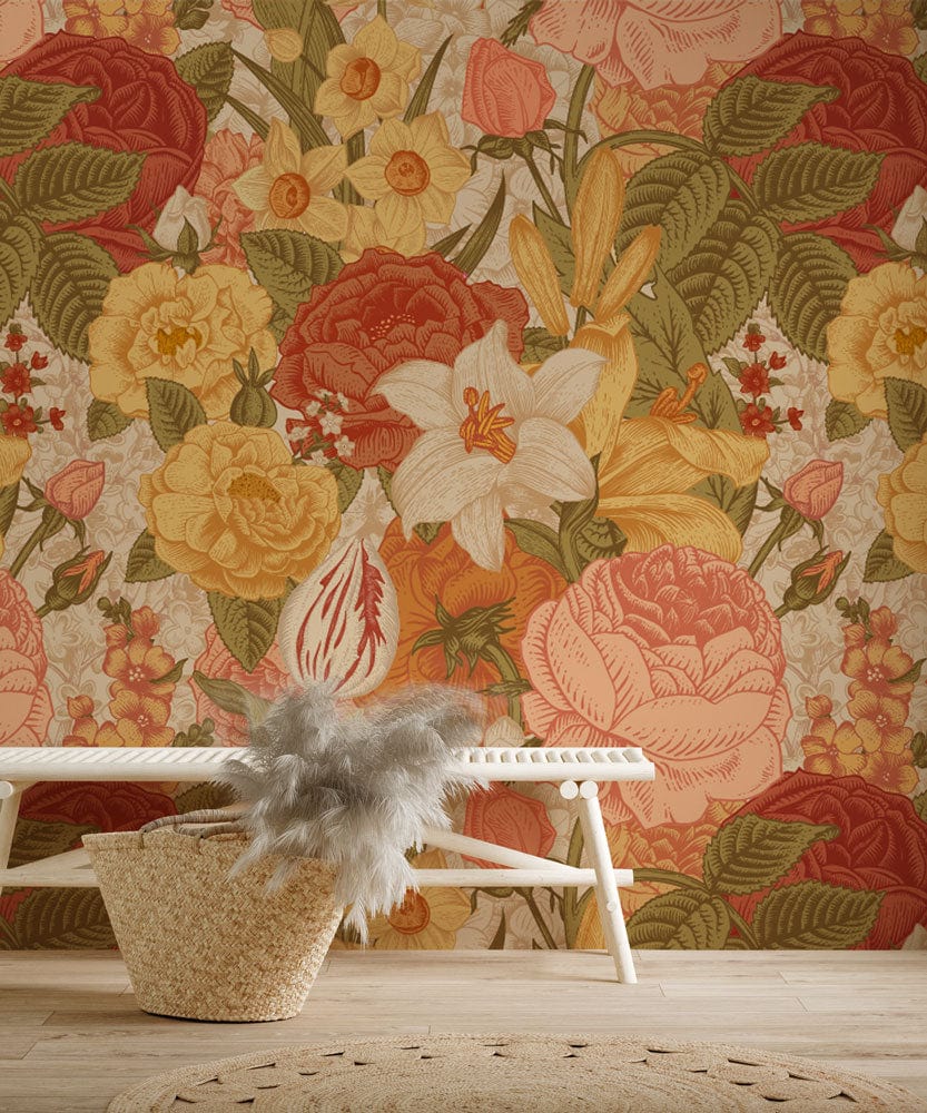 A captivating tapestry of flowers in tight clusters, this wallpaper mural brings nature's artistry into any space. Delicate blossoms in harmonious arrangements weave together to create a lush, vibrant texture that instantly imbues a sense of timeless sophistication. The intricate design, with its graceful details and lush layers, provides an exquisite backdrop fitting for a range of interior settings. Whether adorning a modern lounge or a vintage-inspired study, this mural offers an elegant balance between bold colours and subtle nuances, inviting a sense of depth and warmth into the room.