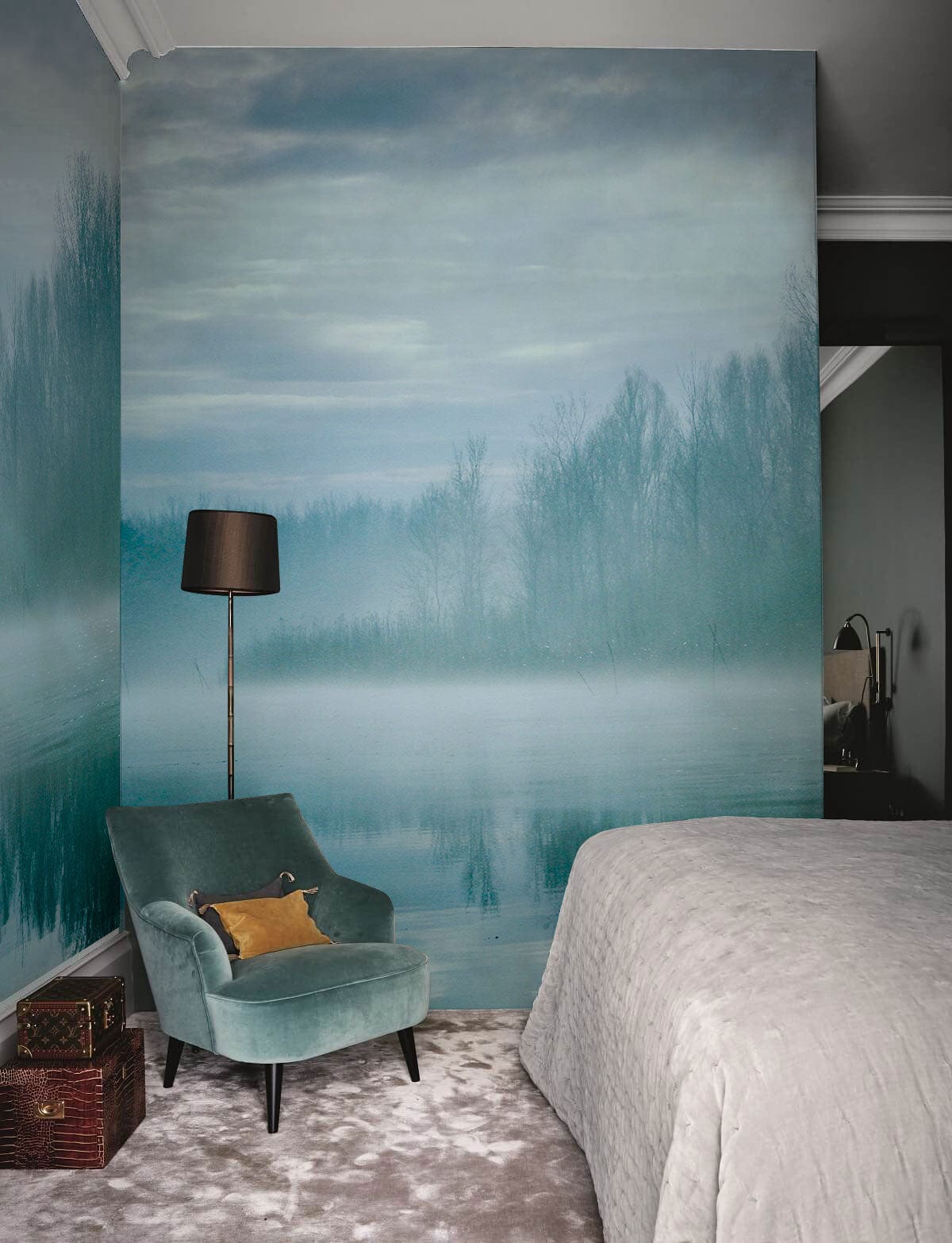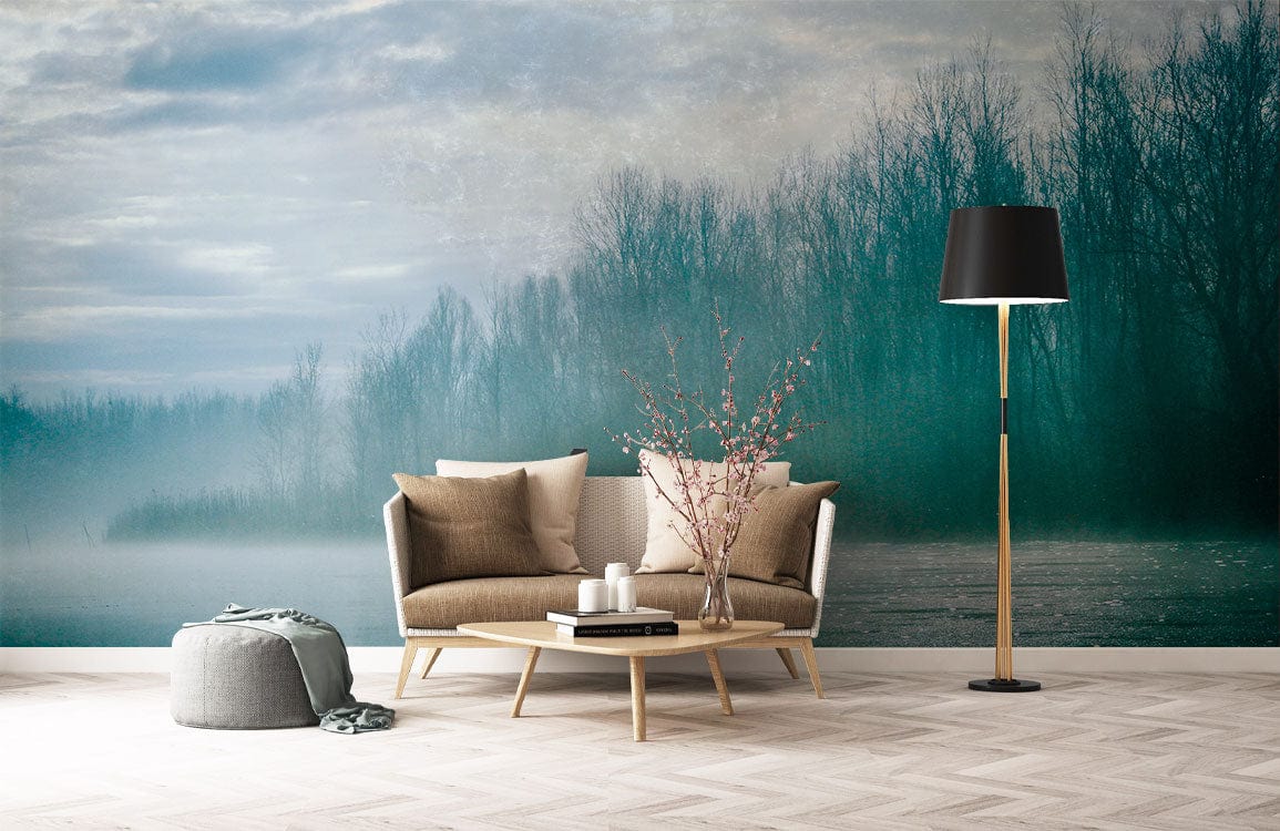 Immerse your space in tranquillity with the Foggy Forest Lake Wallpaper Mural, where mist-laden trees meet a serene water's edge. This mural captures the poetic beauty of nature with its delicate interplay of light and shadow, offering a perfect blend of artistry and elegance. Subtle textures and a captivating depth make it a timeless addition to both classic and contemporary interiors.