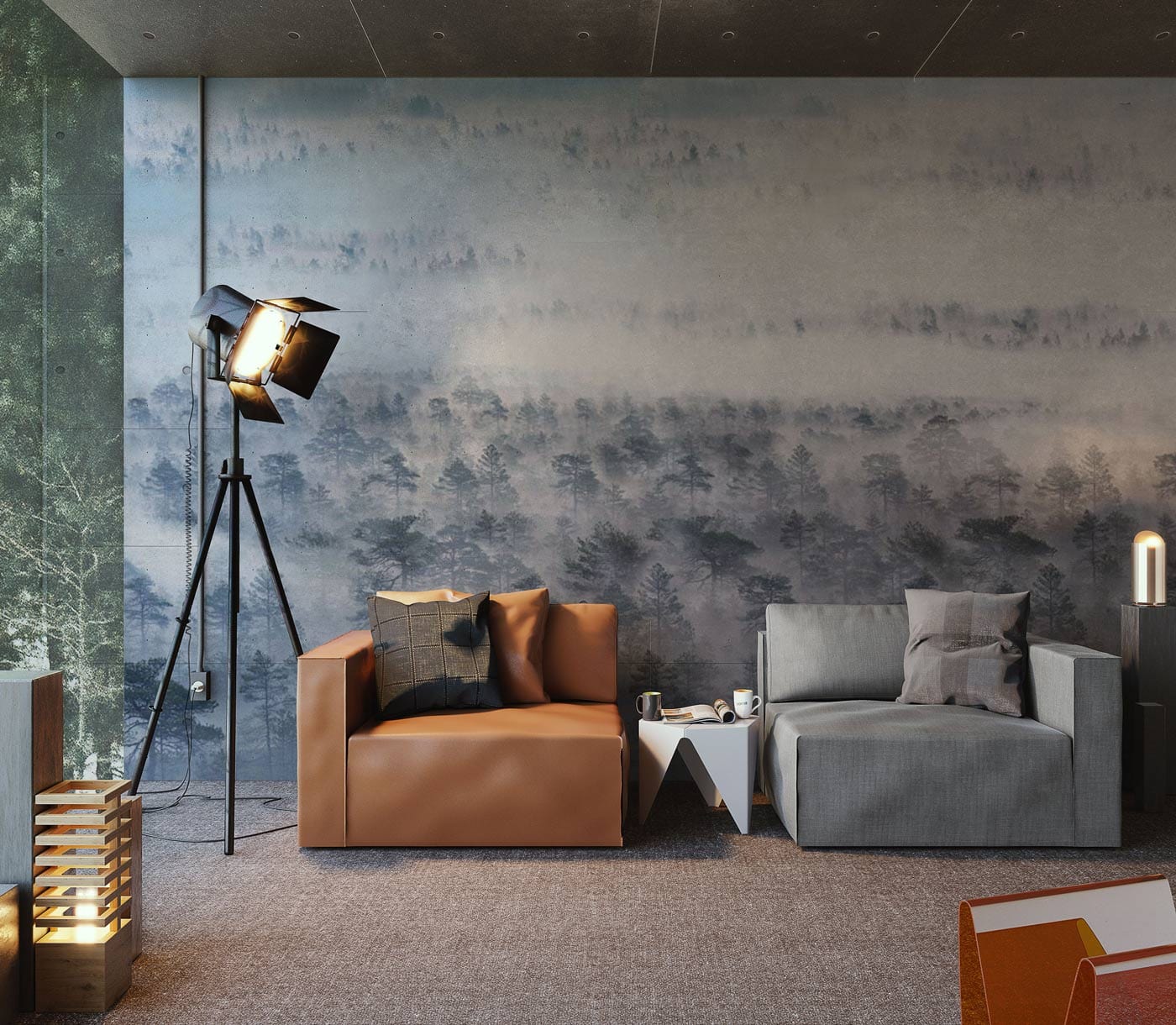 Our foggy forest wallpaper mural will transform your room into a natural beauty. Install this forest wallpaper in your workplace or anywhere at home! With such airy green, choose d篓娄cor with similar shades. Choose white accent pieces to reflect the tones in this tree mural. If used as a kitchen wallpaper, choose white kitchen units and paint the rest of the walls in a shade of blue.