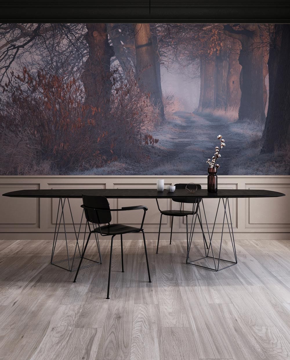 Immerse yourself in the enchanting allure of the Forest Alley Wallpaper Mural. This mural captures a serene woodland path, where ancient trees stretch gloriously into a misty horizon. Rich earthy tones and delicate wisps of fog create an inviting atmosphere, perfectly balancing tranquillity and intrigue. Ideal for infusing any room with a touch of nature's timeless beauty, its detailed texture invites reflection and wanderlust, making it a sophisticated focal point in various interiors.