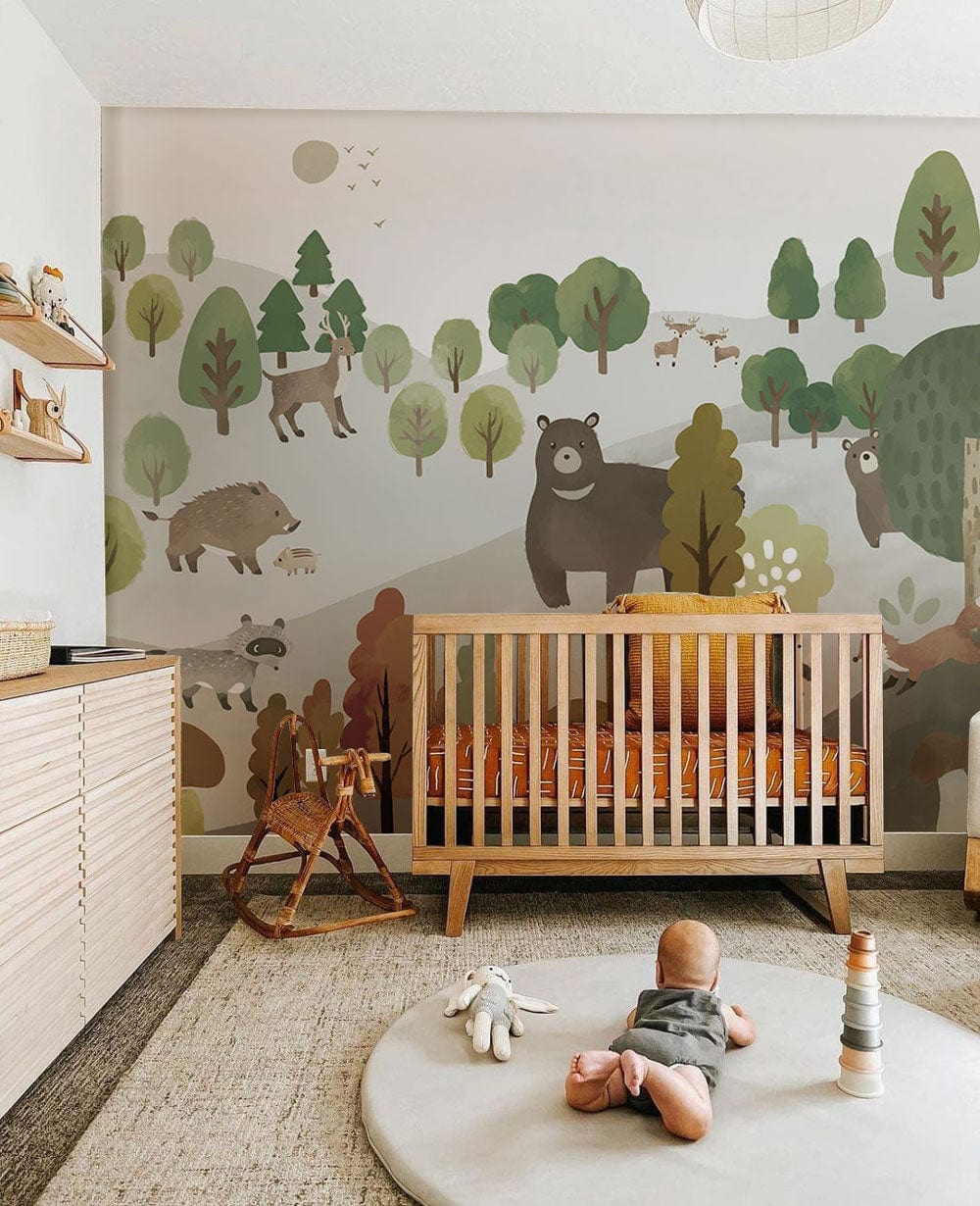 Our Forest Animals Migration Wallpaper Mural is a fun pattern that can brighten up a home and help to refresh it with more significant imagery. The animals unite to produce a comic-like woodland creatures' interaction in a mural with children's stories rich in excursions and discoveries. It's perfect for your kids' room, bedroom, or anywhere else you want to create a lively and cheerful atmosphere. Your life will be energized by the joyful design and summertime vibe!