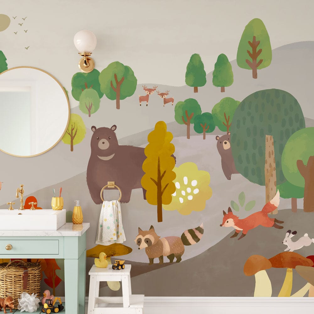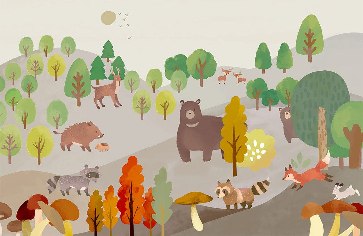 Invite the serene tranquillity of a woodland haven into your space with the Forest Animals Migration Wallpaper Mural. This exquisite mural features a charming procession of forest creatures amidst a softly coloured landscape. Every element is delicately illustrated, showcasing delightful details and creating a whimsical ambience. Perfectly suited for modern interiors, this mural embodies an artistic finesse that can effortlessly complement both traditional and contemporary settings.