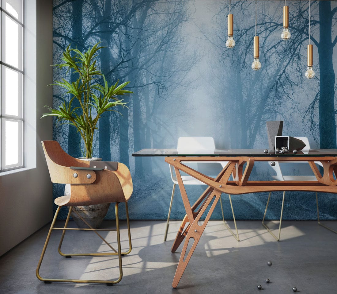 Give your bathroom a warm feeling with this Forest in Fog Wallpaper Mural in cool shades! This forest wallpaper mural will instantly transform your space into the relaxing retreat you've been looking for, wherever you place it. But with its cooling blue tones, this landscape print makes the perfect bathroom wallpaper mural to add some colour and character to your bathroom walls.