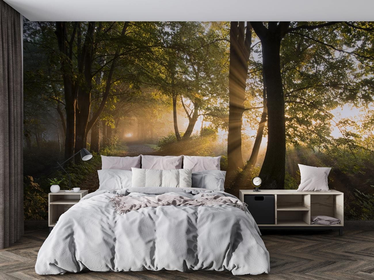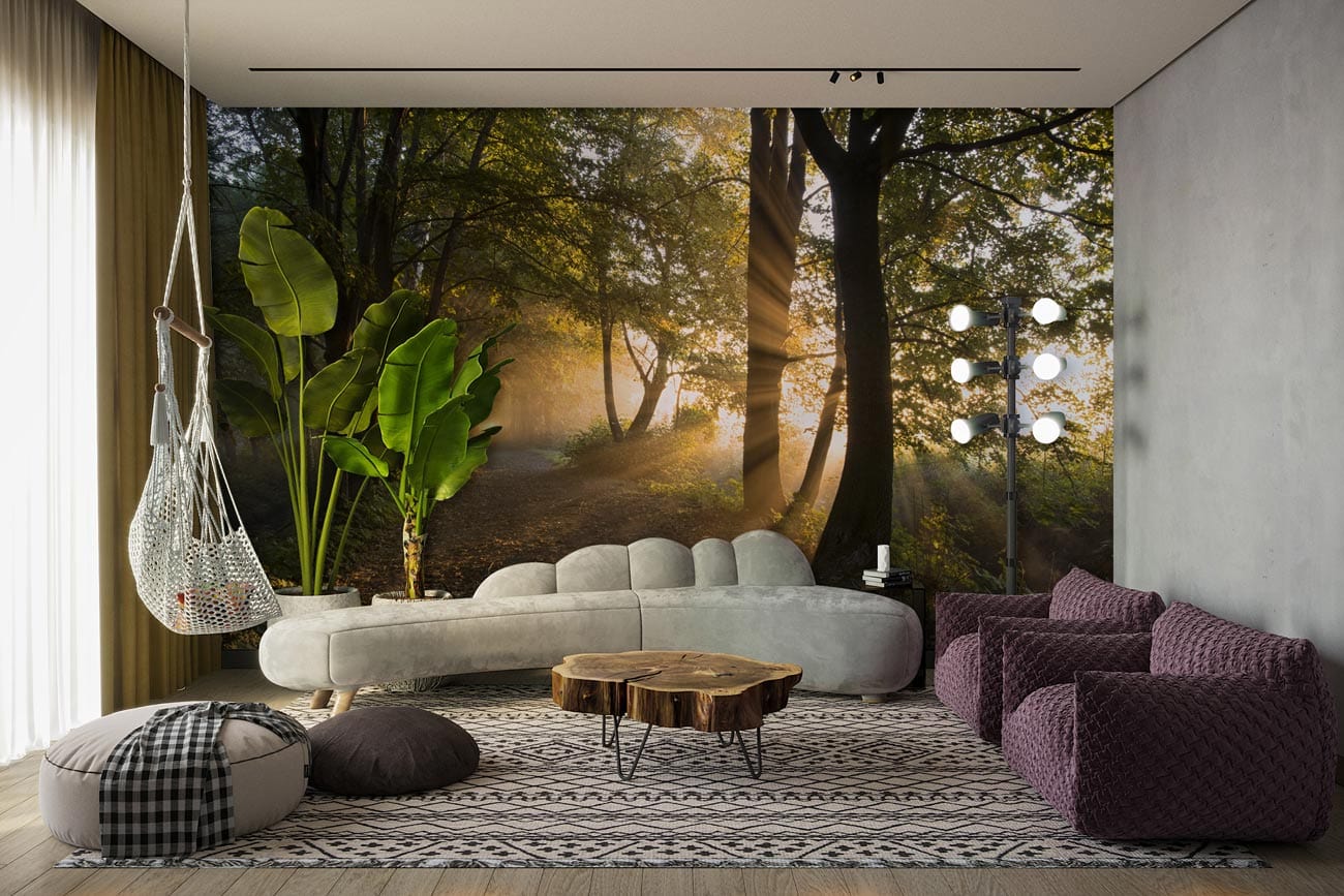 Immerse your space with the enchanting calm of the Forest Sunshine Wallpaper Mural. This exquisite design captures the serene beauty of sunbeams gently piercing through a lush woodland, creating a picturesque scene filled with natural wonder. The intricate details of the forest's delicate leaf patterns and the soft, dappled light evoke a timeless elegance, making it an exquisite choice for a variety of interiors.