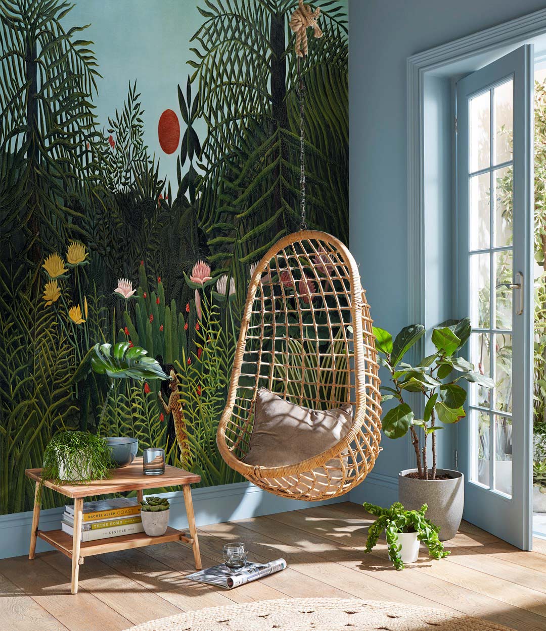 Immerse your space in the timeless elegance of the Forest with Sunset Wallpaper Mural. This design captures the serene transition of day into night, featuring lush greenery and a striking sun as the centrepiece. Delicate pinks and bold yellows intersperse within the foliage, providing a sophisticated palette that complements both modern and vintage décor. Each element is intricately detailed, creating an inviting ambience that resonates warmth and tranquillity.