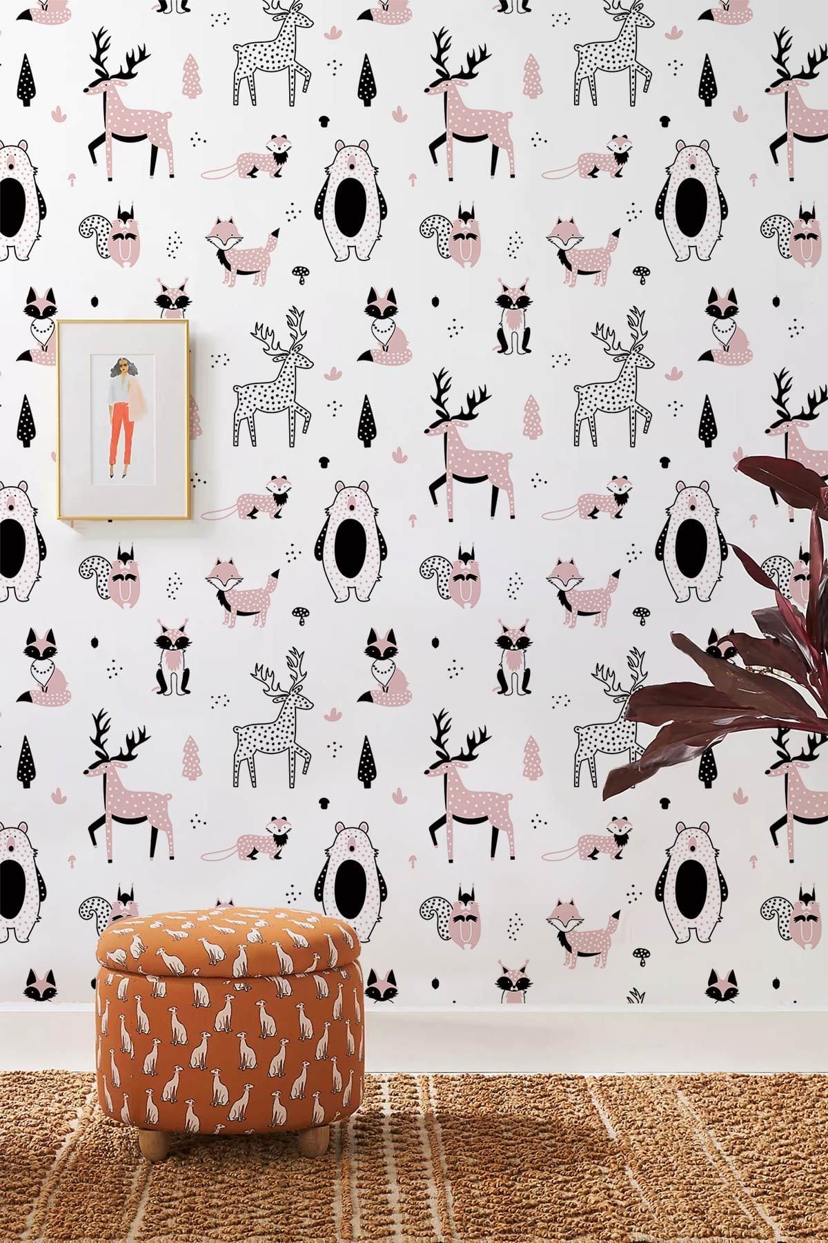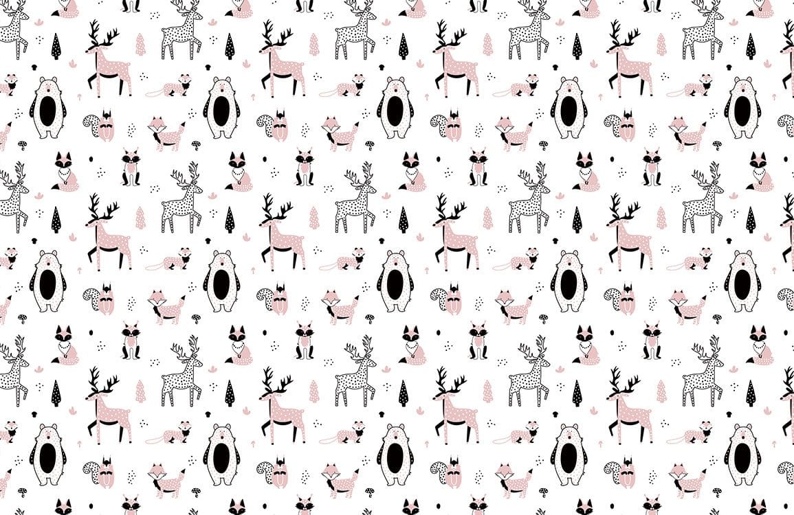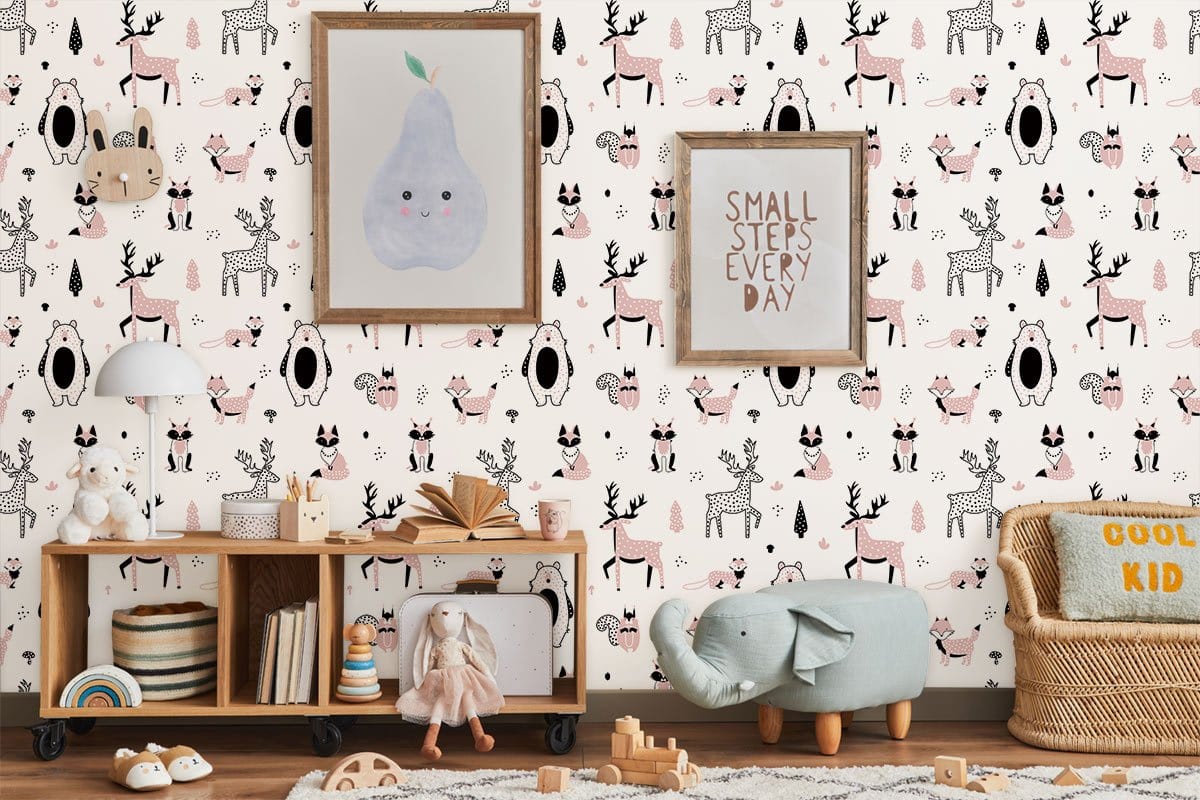 Adorn your kid's room with our cute little animals wallpaper mural. This repeated pattern design includes lovely fox, bear and deer under white background that is sure to melt your children's heart. Perfect for a baby nursery or your child's room and works best with all kinds of furniture styles.