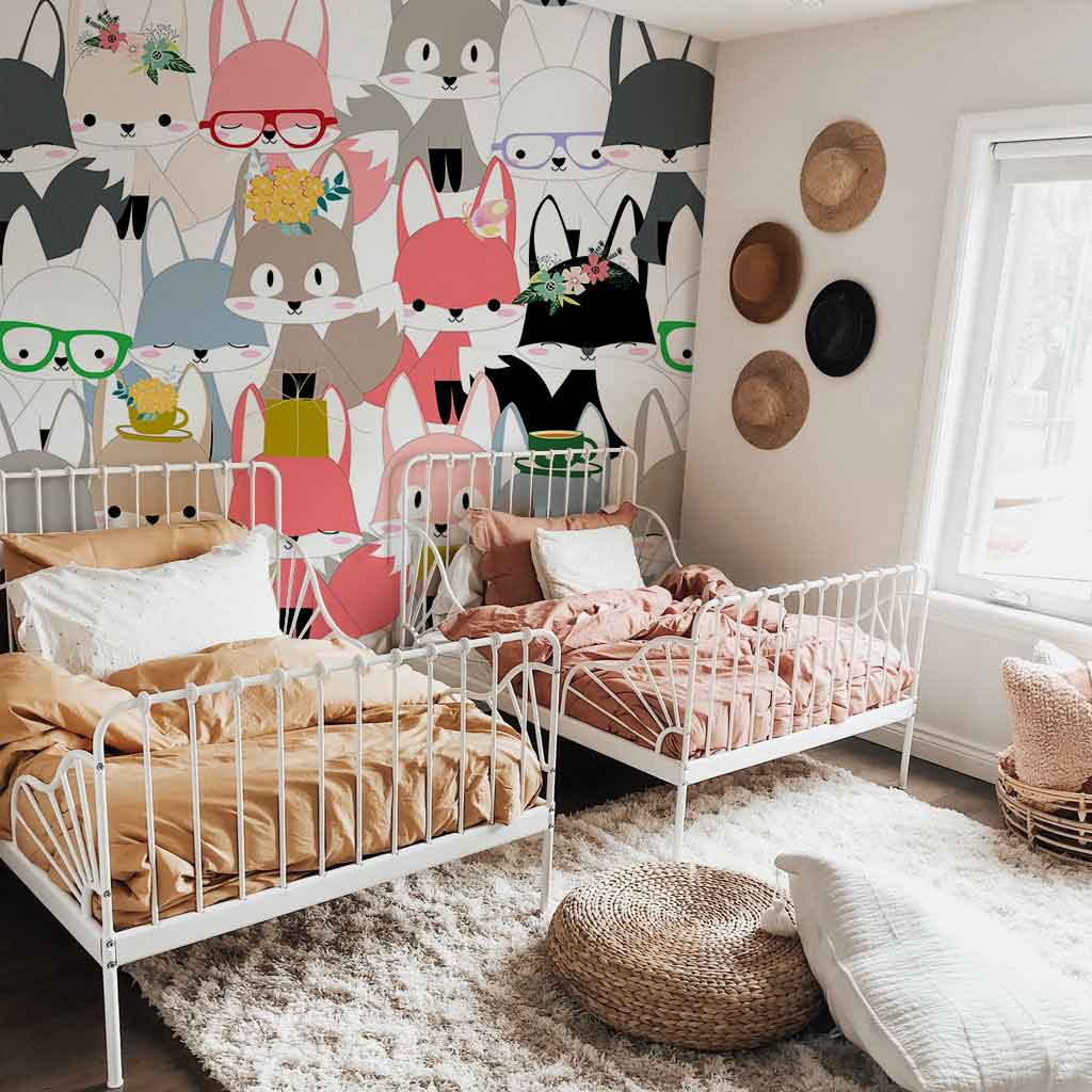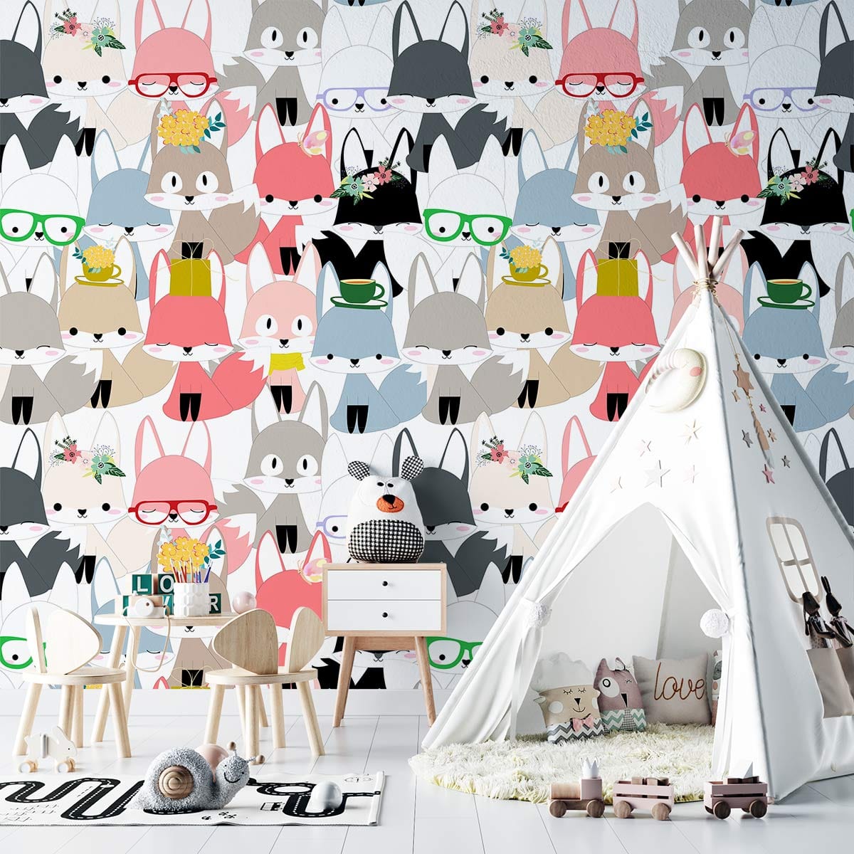 Foxes Life Mural Wallpaper will add style and charm to your interior decor. With your favorite characters of foxes, including the smart, playful, and cute ones, this animal wallpaper mural is sure to create a fun ambiance in any room of your house! A unique design in bright and vivid colours, this wallpaper mural is perfect for making an inviting, welcoming space to impress family and friends. Perfect for playing rooms and nurseries, dorms, playrooms, and offices, your kids will love this mural inspired by nature and its beauties.