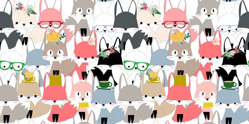 Immerse your space in whimsy and charm with the Foxes Life Wallpaper Mural. Featuring a delightful assembly of fox characters adorned with playful accessories, this design brims with personality. The exquisite illustration captures a balance of innocence and sophistication, rendering it suitable for both contemporary and eclectic interiors. Its detailed artistry and textured appeal create a unique visual narrative that effortlessly complements diverse settings.