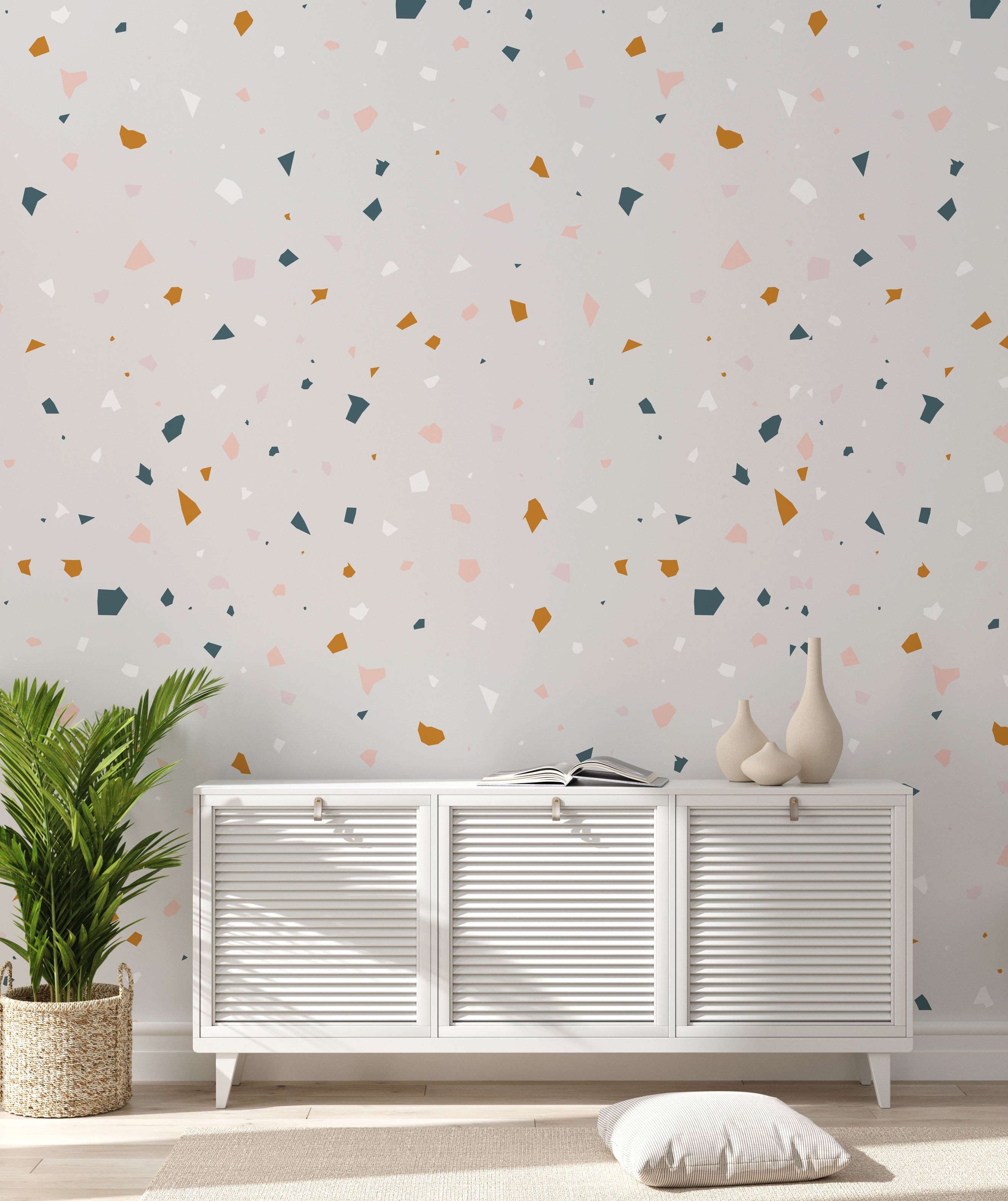 Get the simple look of terrazzo tiles on your walls with this gorgeous pastel wallpaper mural. This on-trend terrazzo wallpaper will create a soothing effect and add simple grace to your living room, bedroom, dining room, bathroom and children's room. Ideal wall mural that works perfectly with any furniture styles.
