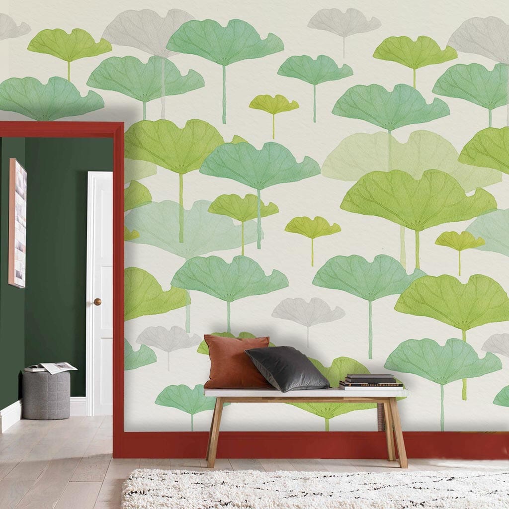 Watercolour Lotus Leaves Wallpaper Mural