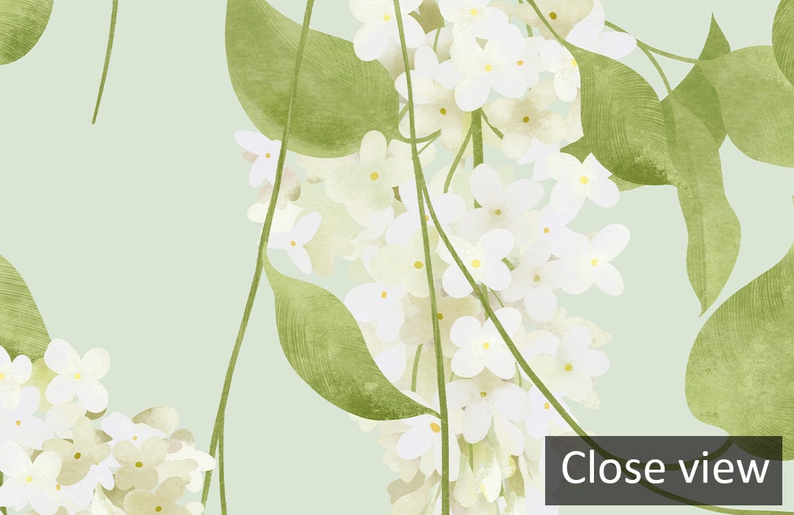 Experience the serene beauty of nature with the Fresh Lilac Wallpaper Mural. Delicate lilac blooms cascade gracefully across a soft green backdrop, creating an enchanting garden wall effect. Each floral detail is meticulously illustrated, offering a soothing ambience that complements both contemporary and traditional interiors.