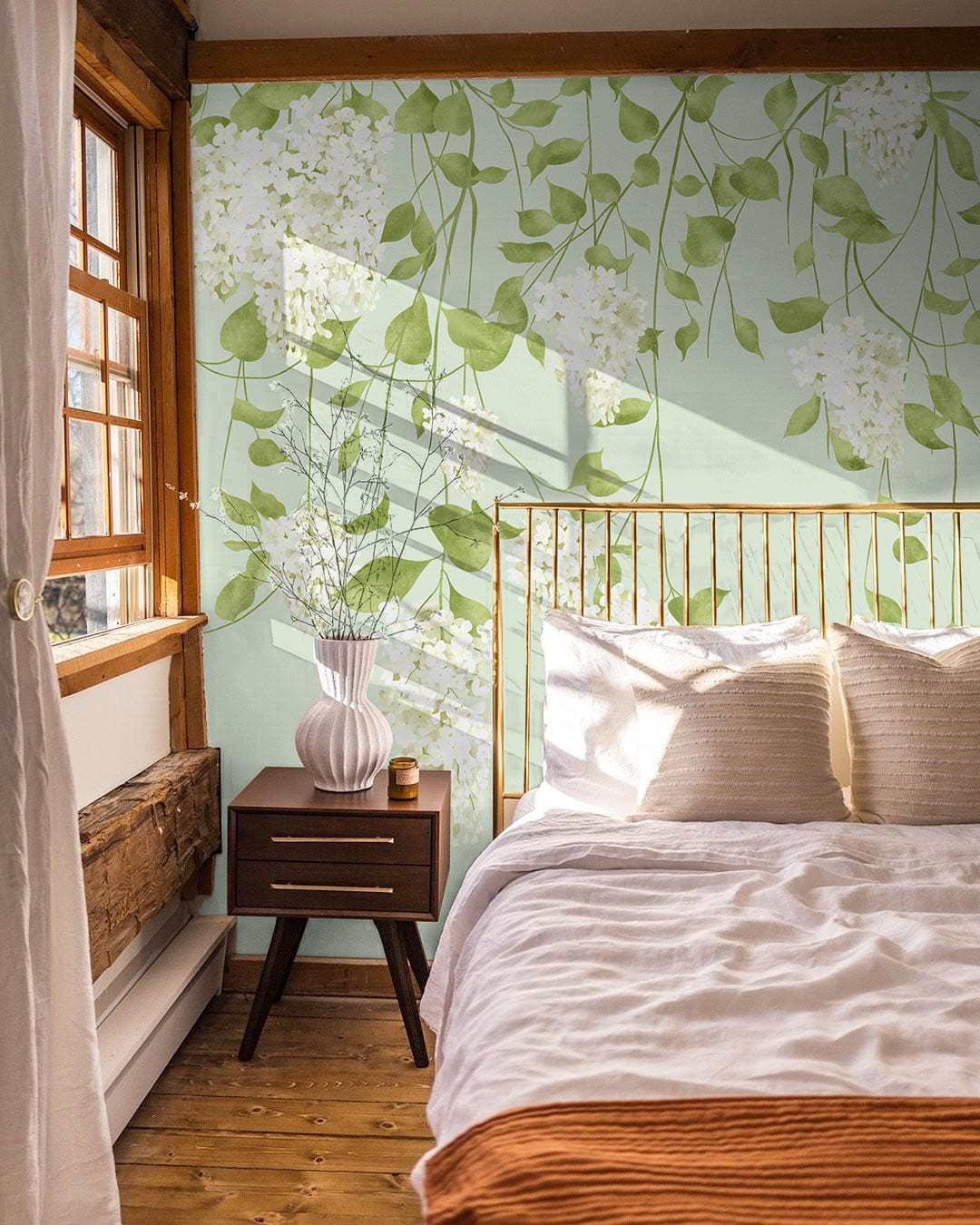 The vivid white blooms that fill the center of this lovely floral wallpaper are accentuated by a sweet combination of pink and green tones. The tranquil colour scheme of this Fresh Lilac Wallpaper Mural is ideal for a range of house designs, from classic to contemporary and everything in between! The most fantastic thing about this green wallpaper is how realistic it seems; it has the texture and depth you'd expect from a hand-drawn work of art like a painting design that has been transferred to your walls.