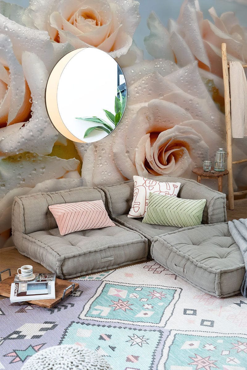 Immerse your living space in elegance with the Fresh Roses Wallpaper Mural. Delicately designed, this mural features soft petals accented with dewdrops, capturing the timeless beauty of fresh blooms. Each rose unfolds in an array of gentle, muted hues, adding a poetic charm and richness to any setting. Ideal for creating a serene and sophisticated atmosphere, this mural offers an artistic blend of detail and grace, fitting seamlessly into both classic and contemporary interiors.