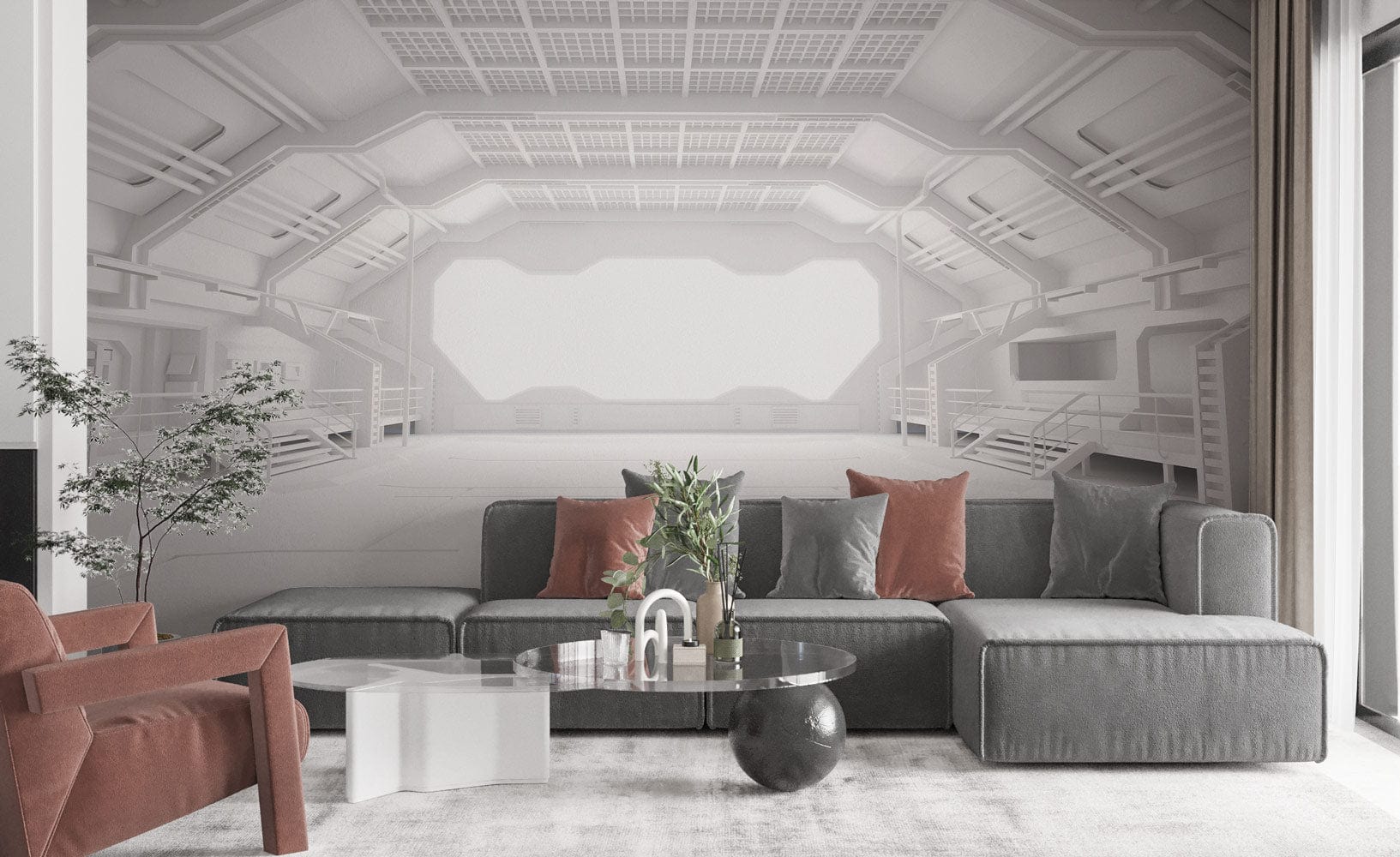Immerse your space in the elegance of the cosmos with this Futuristic Space Station Interior Mural Wallpaper. Its intricate design captures a serene ambience with sleek lines and geometric forms, evoking the essence of advanced technology. The soft interplay of colours creates a calming yet striking backdrop, perfect for any modern setting. Ideal for those seeking a sophisticated aesthetic that transcends time and space.