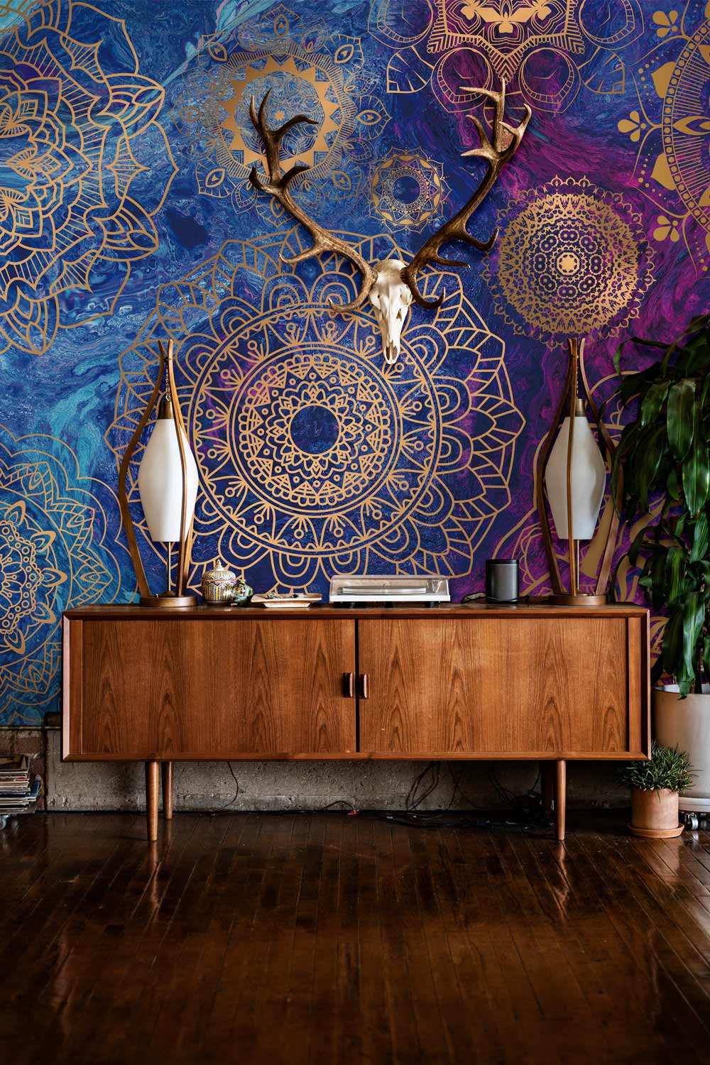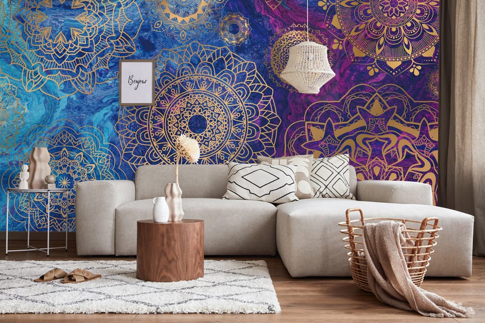Our Galaxy Mandala Patterns Wallpaper Mural creates a soothing atmosphere in every room. This mural can be matched with an array of diverse decorative elements for an eye-catching central focus thanks to its well-blended mandala design on a galaxy- coloured background. The complex pattern will lend a vintage feel to any room in your house or business, adding a touch of calm and chill to liven things up. This mural is removable, repositionable, and leaves no residue upon removal.