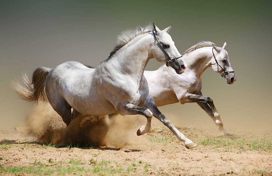 The Galloping Horses Wallpaper Mural effortlessly captures the untamed spirit of nature, featuring horses in full stride against a soft, blurred background. This exquisite design evokes a sense of movement and freedom, making it a striking addition to various interiors. The fine detailing of the horses' muscular forms is both dynamic and graceful, creating a captivating focal point that resonates with equestrian elegance.