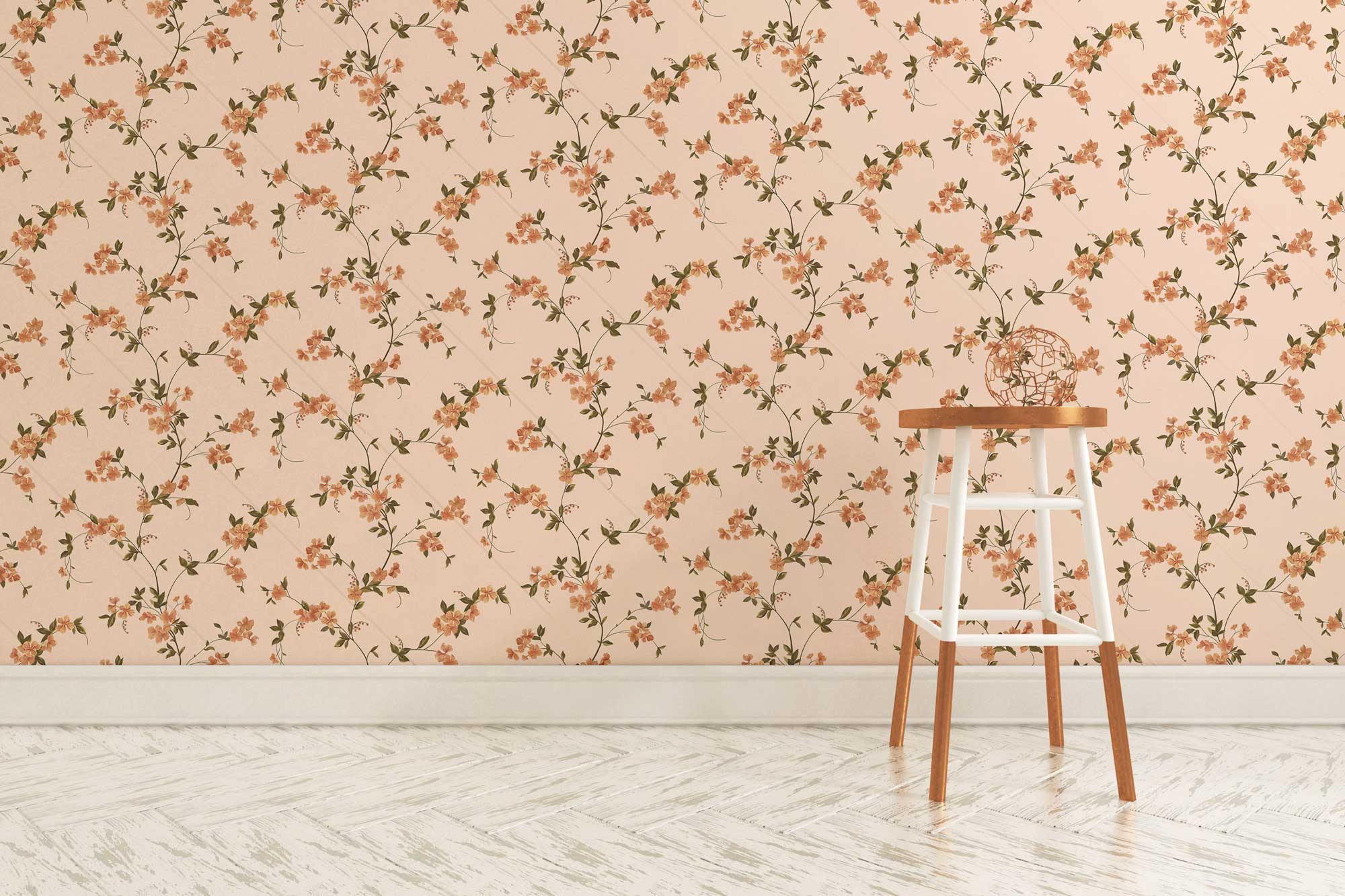 Beautify your home with this repeat flower vine pattern wallpaper mural. This design in sand pink background with flower vines crawling across your walls will instantly add more freshness to your rooms. Pair it with traditional furniture and home decors for a charming look to your Interiors.