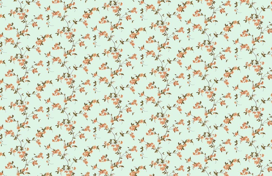 Beautify your home with this repeat flower vine pattern wallpaper mural. This design in mint green background with flower vines crawling across your walls will instantly add more freshness to your rooms. Pair it with traditional furniture and home decors for a charming look to your Interiors.
